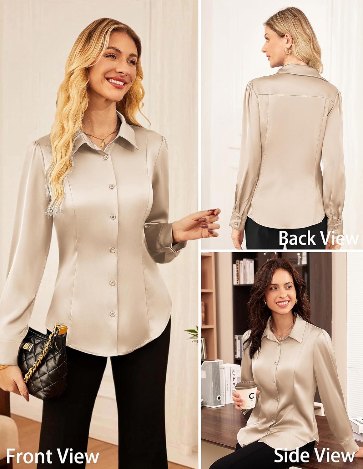 GRACE KARIN Satin Blouses for Women, Long Sleeve Business Shirt, Work Dressy Casual Tops, Professional Office Outfit(Beige)
