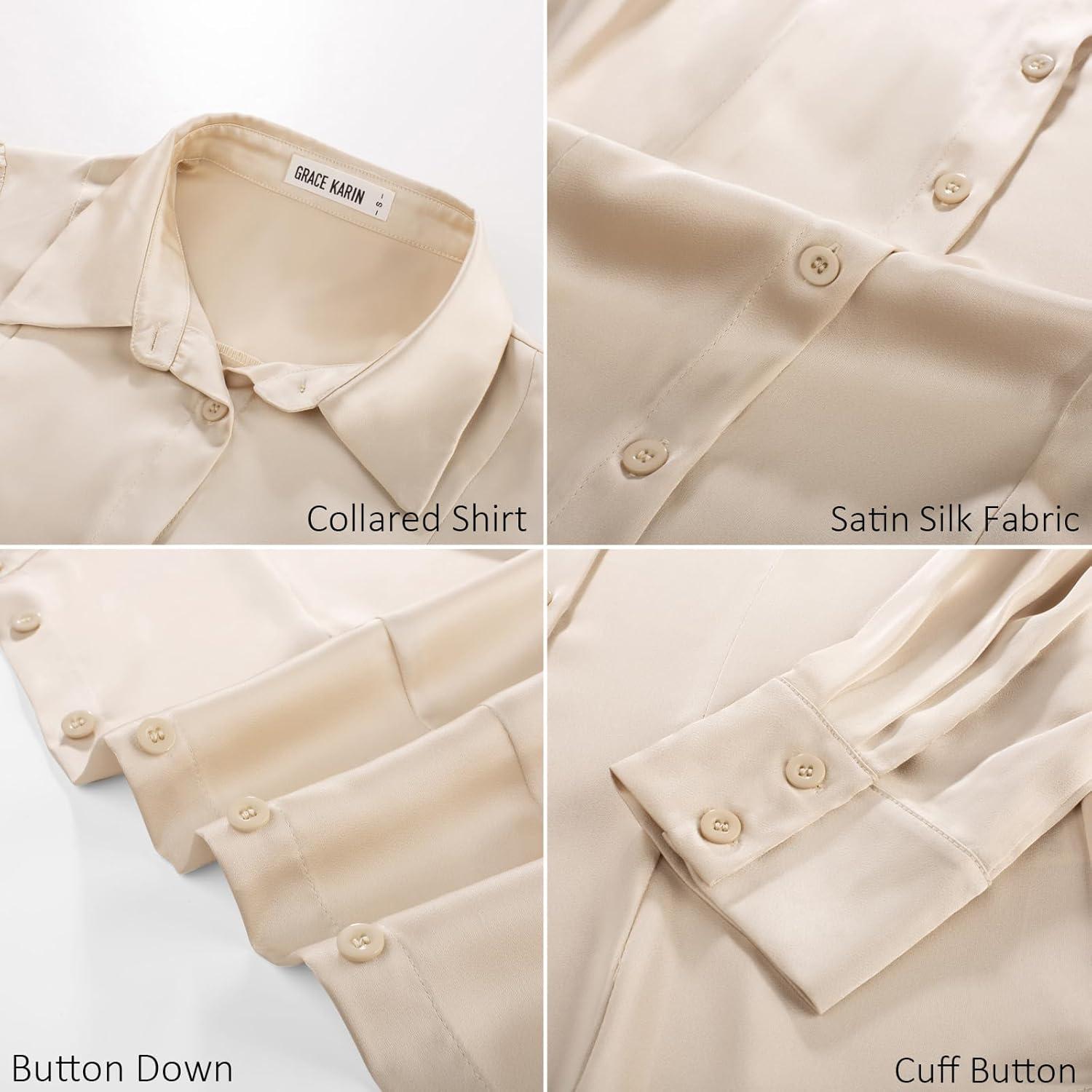 imageGRACE KARIN Satin Blouses for Women Long Sleeve Business Shirt Work Dressy Casual Tops Professional Office OutfitBeige