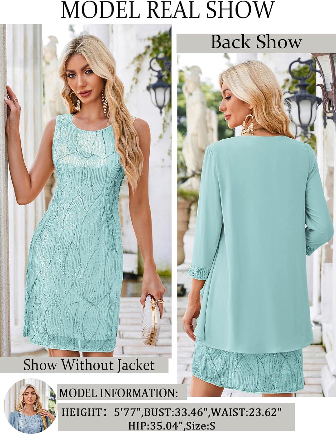 Get your hands on our exclusive GRACE KARIN Sequin Dress for Women Knee Length Mother of the Bride Dresses Formal Dress Two Piece Dress with Chiffon Jacket(Aqua Green) collection, now at a discounted price.