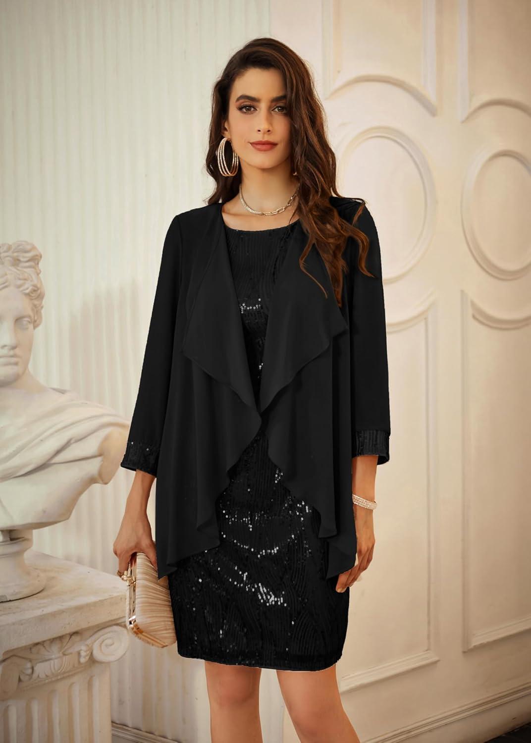 Get more for your money with our exclusive bundle deals on GRACE KARIN Sequin Dress for Women Knee Length Mother of the Bride Dresses Formal Dress Two Piece Dress with Chiffon Jacket(Black) and accessories.