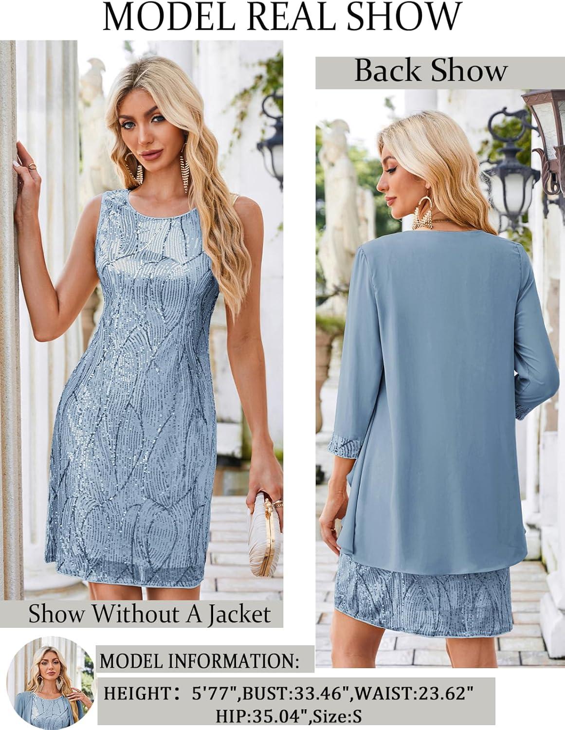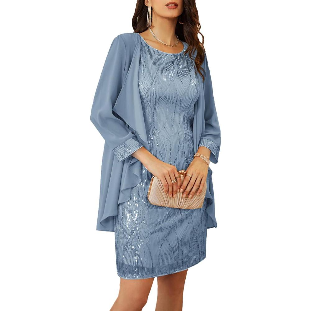 Get the GRACE KARIN Sequin Dress for Women Knee Length Mother of the Bride Dresses Formal Dress Two Piece Dress with Chiffon Jacket(Light Gray Blue) you’ve been eyeing at a discounted price during our seasonal sale event.