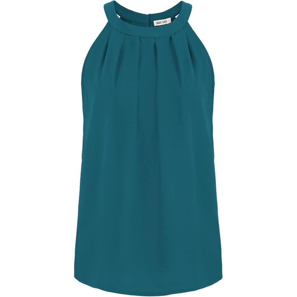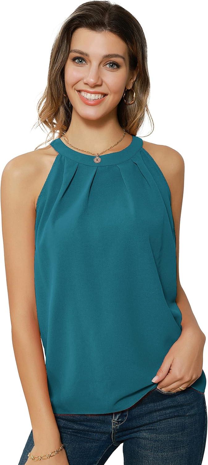 Women's Casual Halter Tops Chiffon Blouses Sleeveless Loose fit Shirts Fashion Sexy Cute