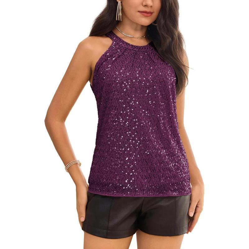 GRACE KARIN Sequin Halter Tops for Women Sleeveless Dressy Sparkle Tank Camisole Tops Party Club Cocktail Vest ShirtPurplewavy