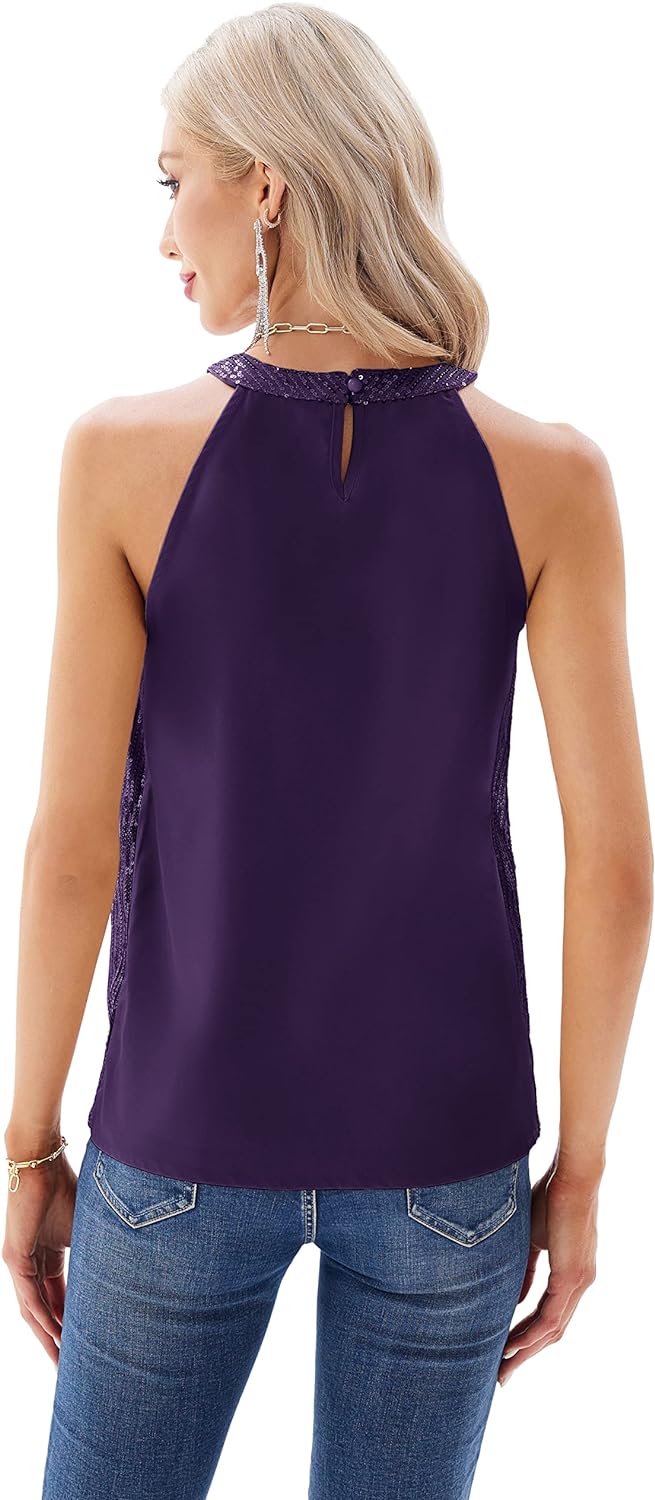 GRACE KARIN Sequin Halter Tops for Women Sleeveless Dressy Sparkle Tank Camisole Tops Party Club Cocktail Vest ShirtPurple
