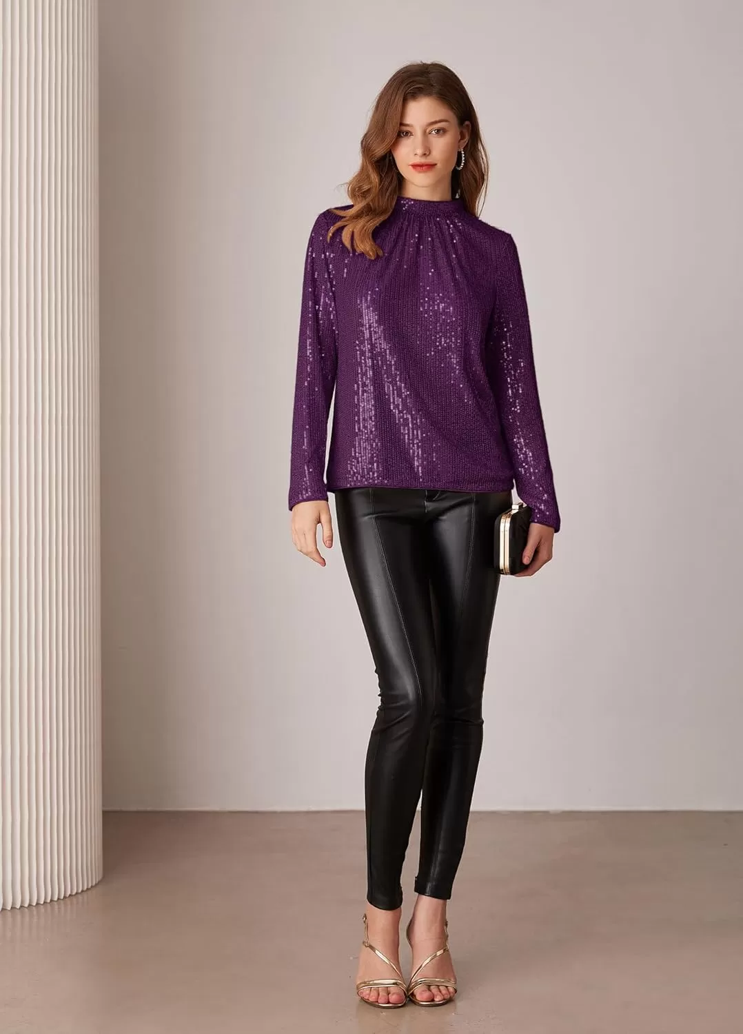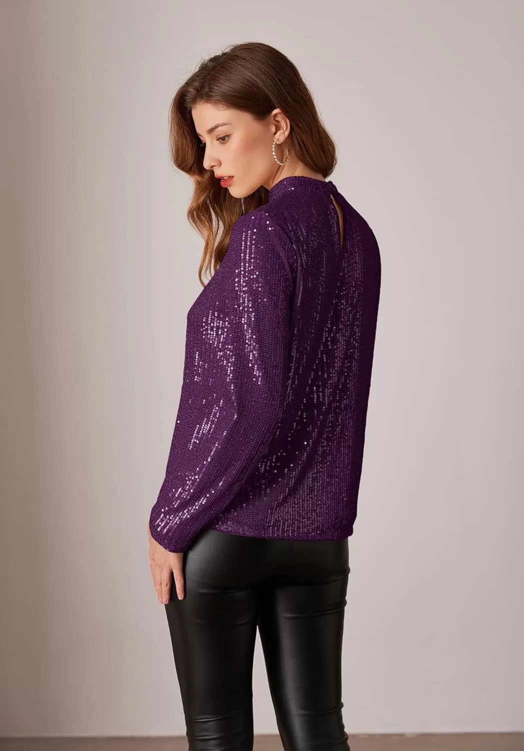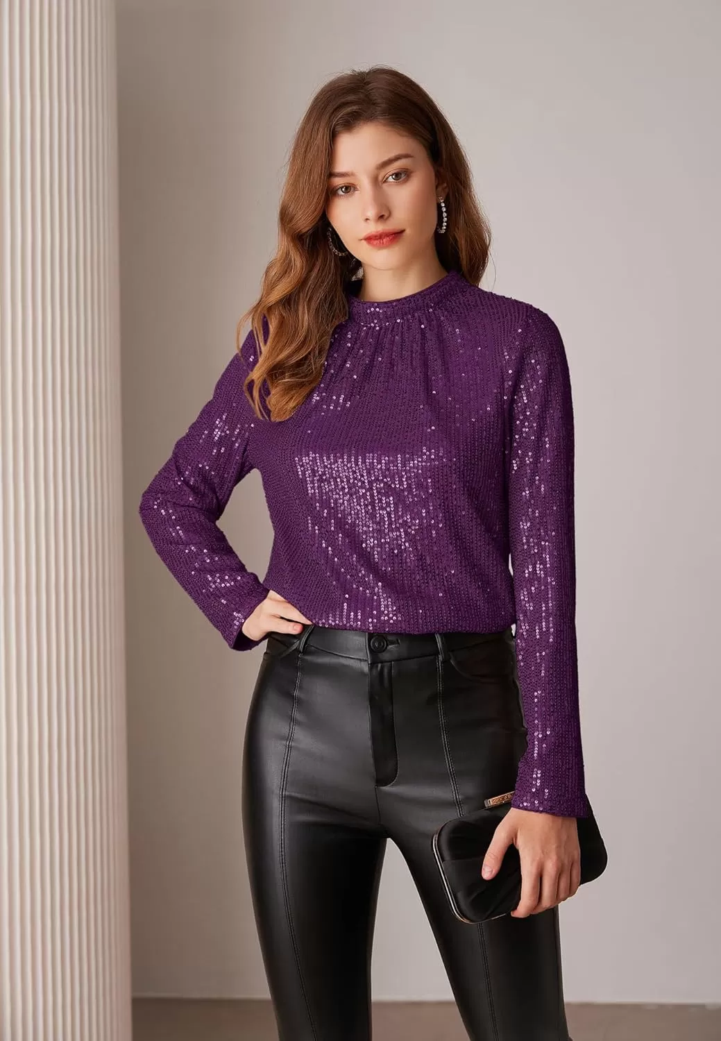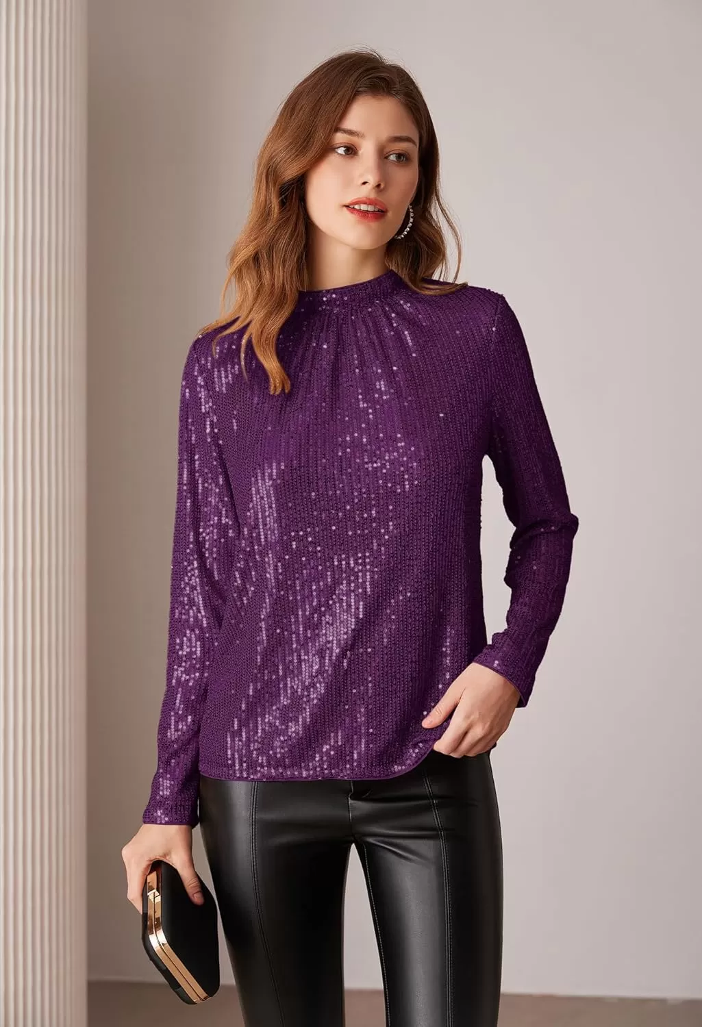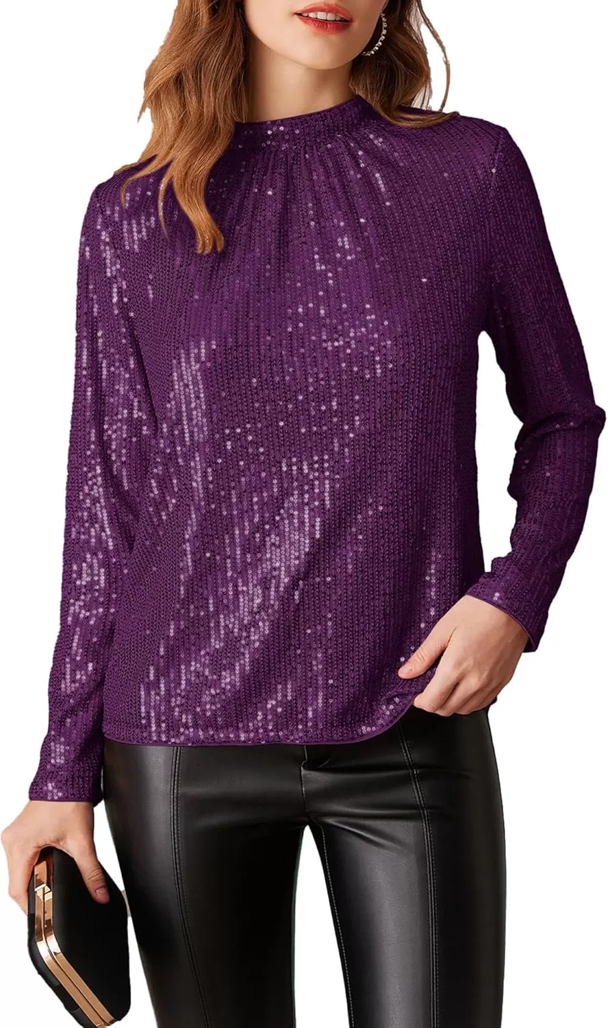 Get more for your money with our exclusive bundle deals on GRACE KARIN Sequin Tops for Women Long Sleeve Crew Neck Loose Fit Sparkly for Party 2024 Fall Winter(Dark Purple) and accessories.