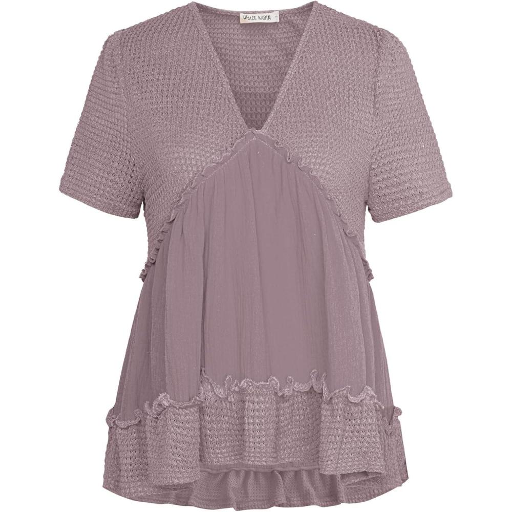 Get the GRACE KARIN Short Sleeve Blouse for Women 2025 Casual V-Neck Ruffle Tops(Light Purple) you want at a price you can afford with our markdown sale.