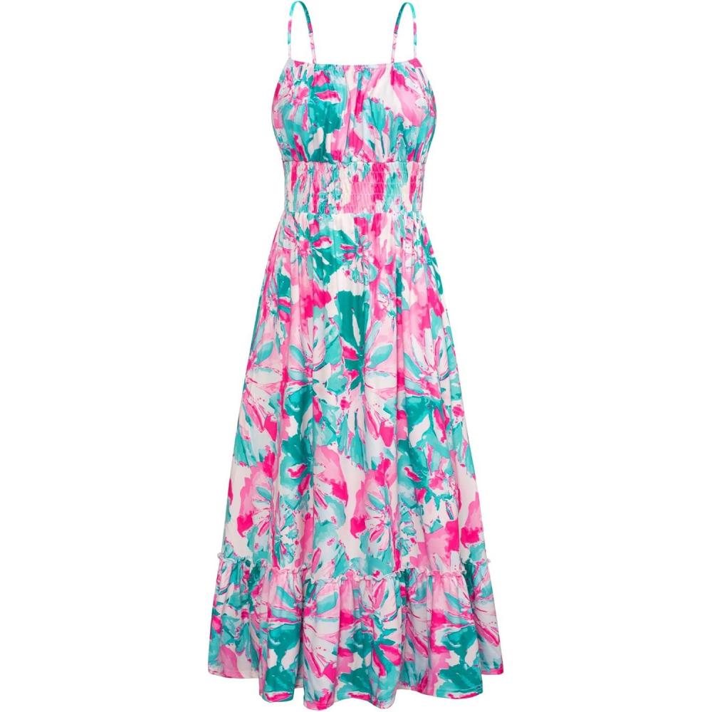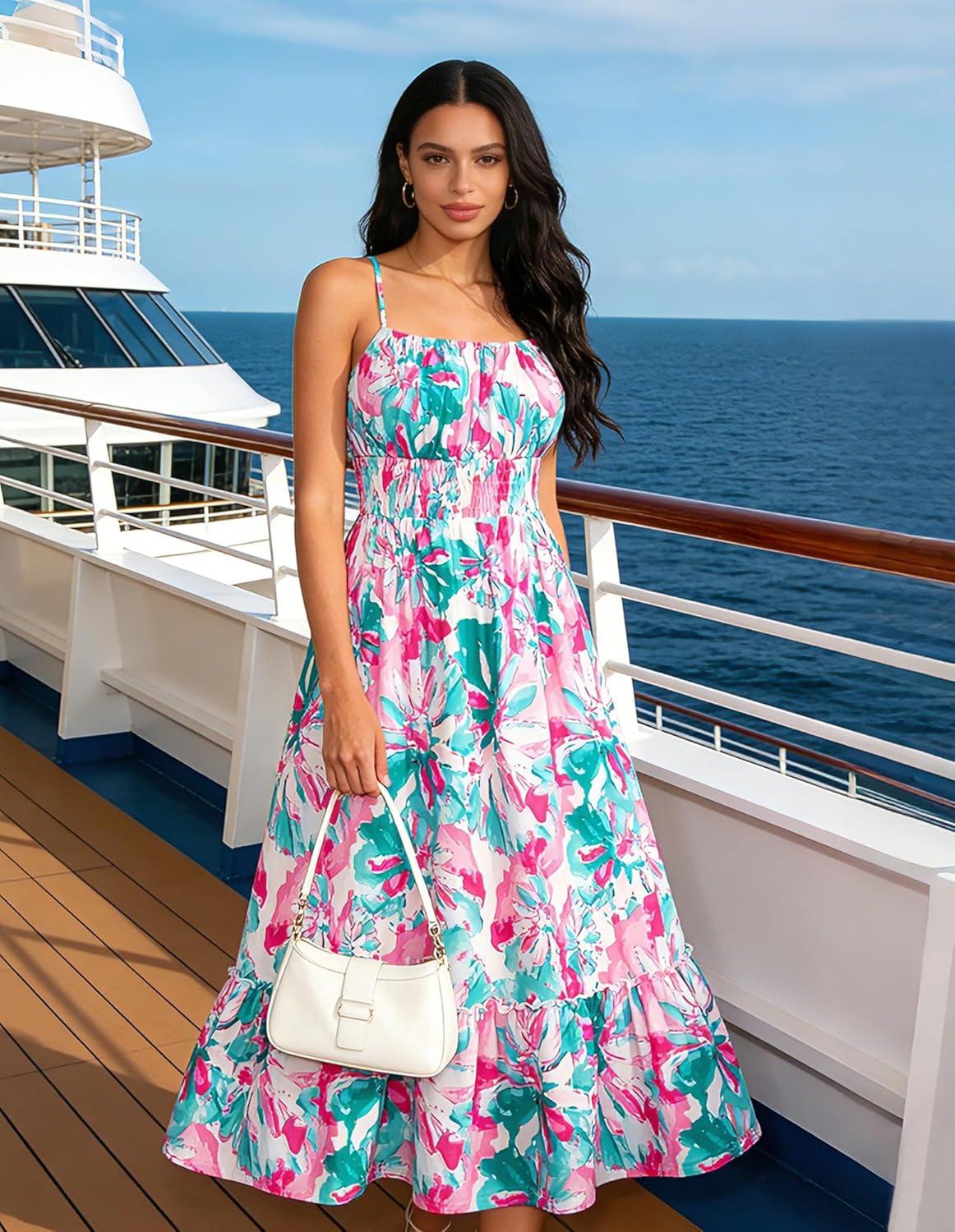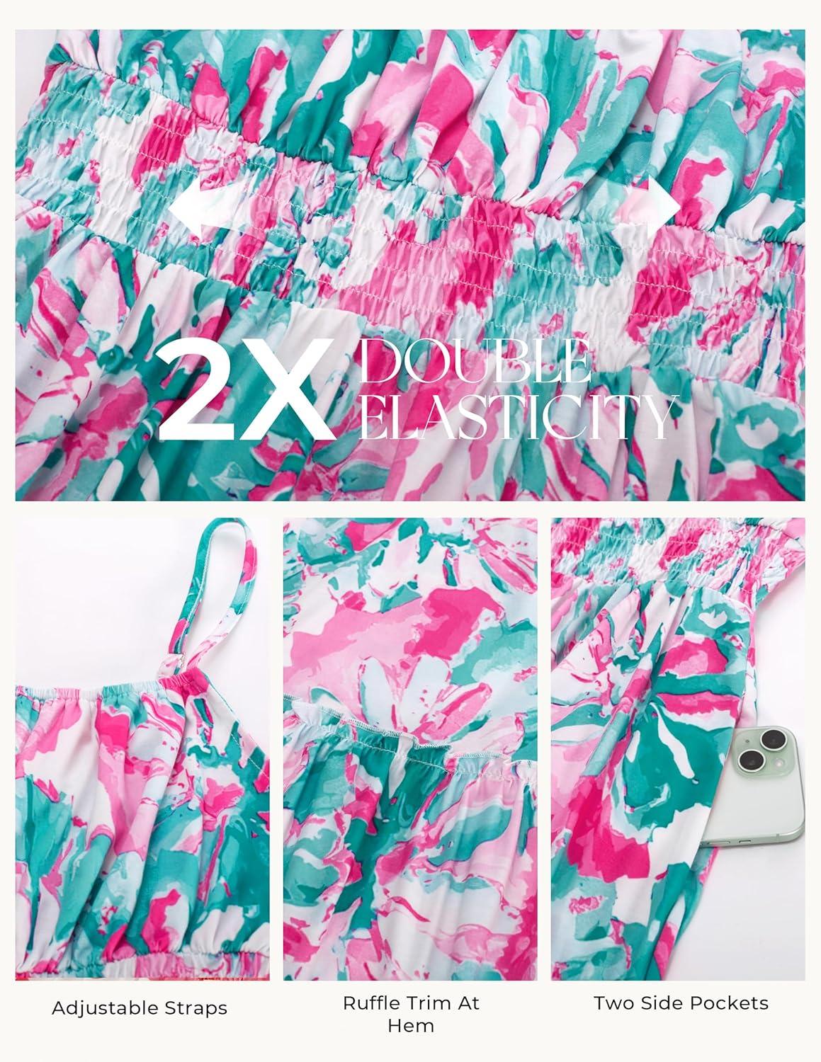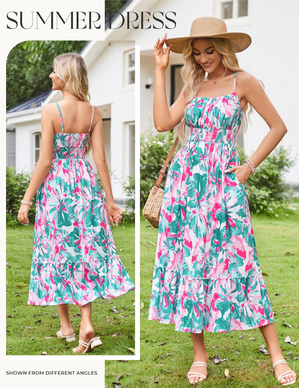 image:imageGRACE KARIN Summer Dresses for Women 2026 VacationSmocked Floral Maxi DressBoho Beach Sundress with Pocket Fashion ClothingGreen Pink Floral