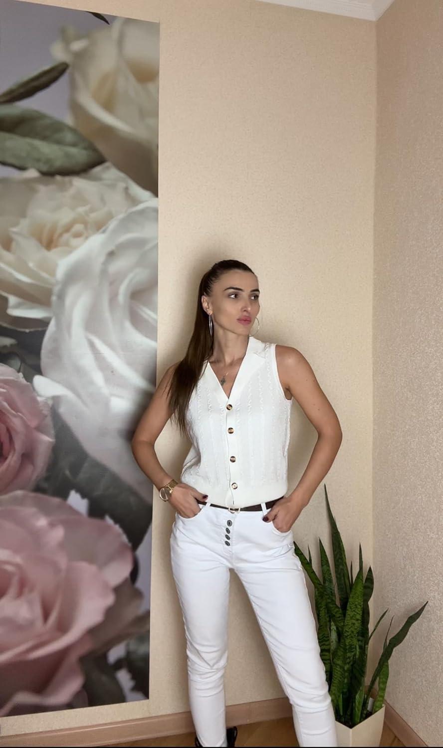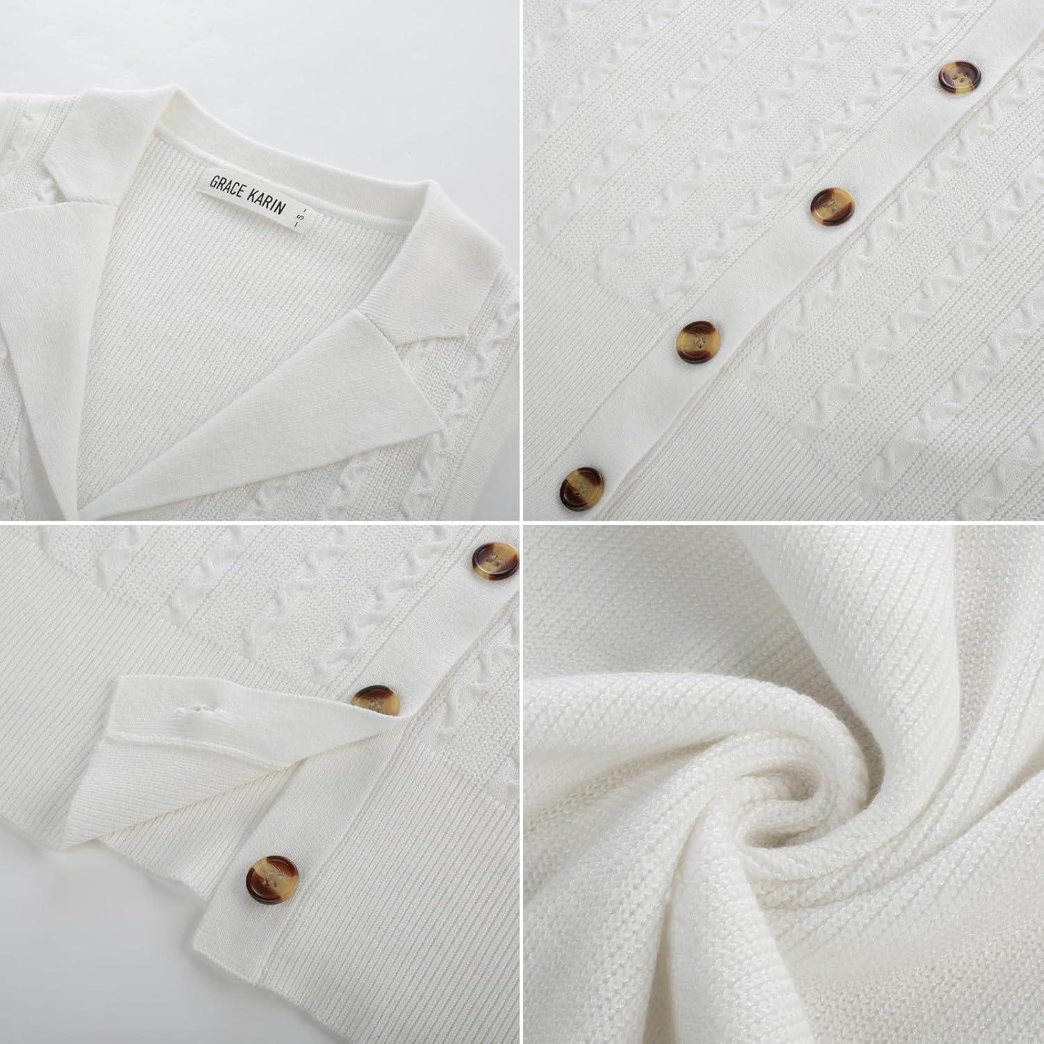 GRACE KARIN Sweater Vest Women Summer Sleeveless Knit Cardigans V Neck Collared Lightweight Button Down Sweaters Tops(White)