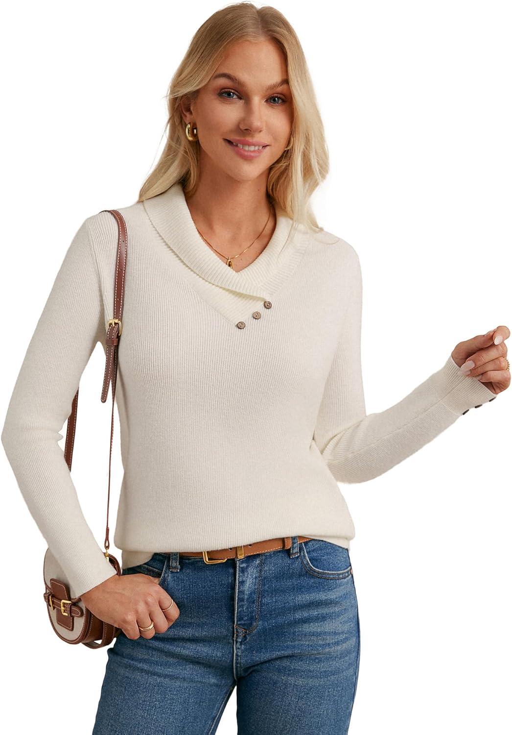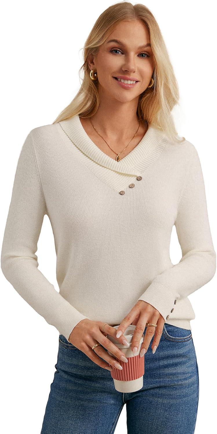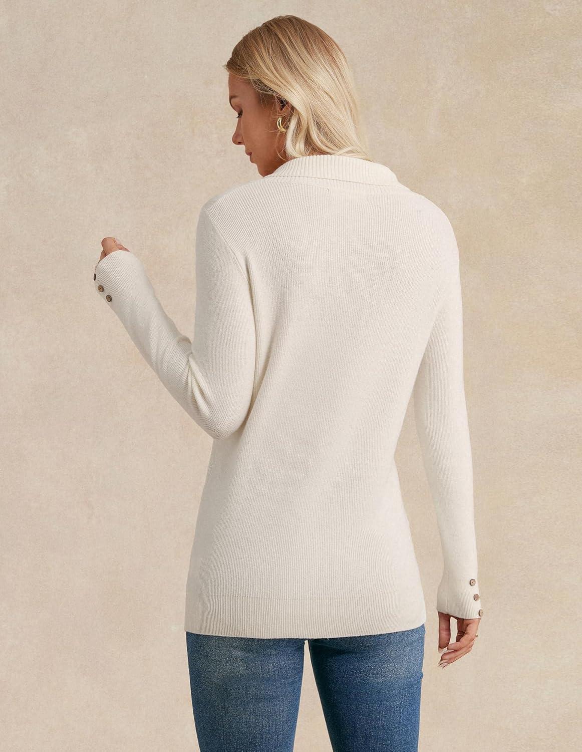 imageGRACE KARIN Sweaters for Women 2025 Fall Long Sleeve V Neck Collared Knitted Pullover Sweaters Dressy Casual TopsWhite