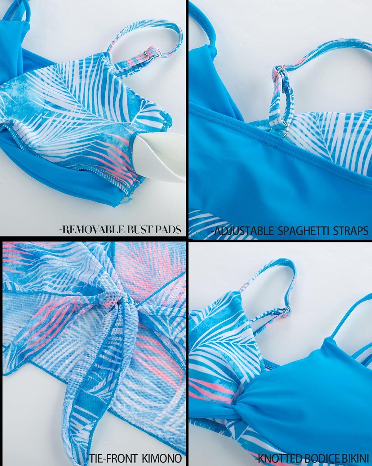 GRACE KARIN Teen Girls Bathing Suits Kids 4 Piece Long Sleeve Swimsuit Kimono Up Pants Bikini Tankini Set Swimwear(Green-coconut Tree)