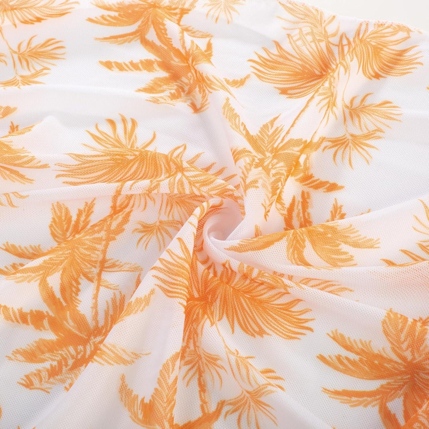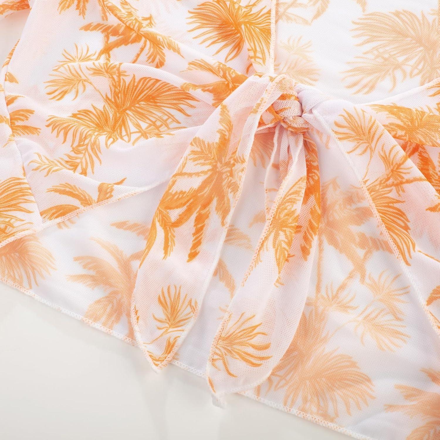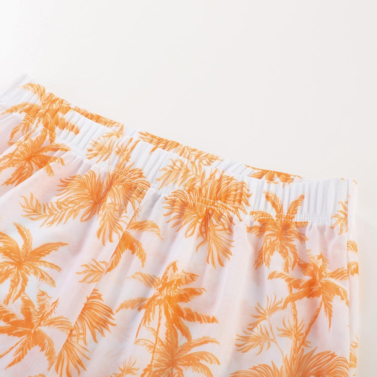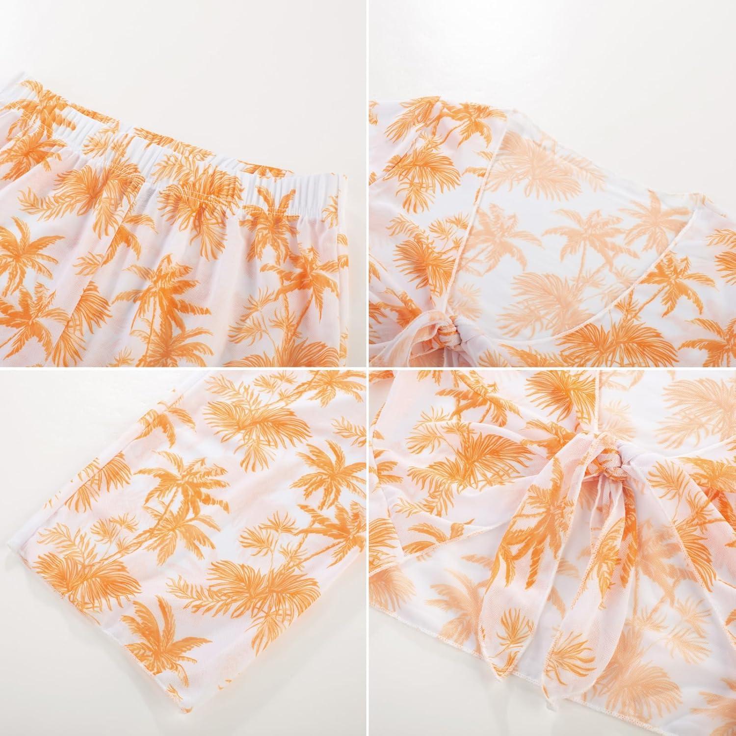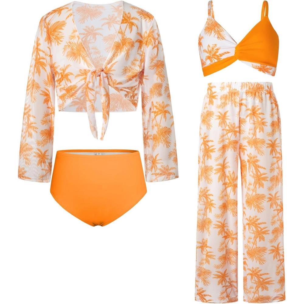 GRACE KARIN Teen Girls Bathing Suits Kids 4 Piece Long Sleeve Swimsuit Kimono Up Pants Bikini Tankini Set Swimwear(Orange-coconut Tree)