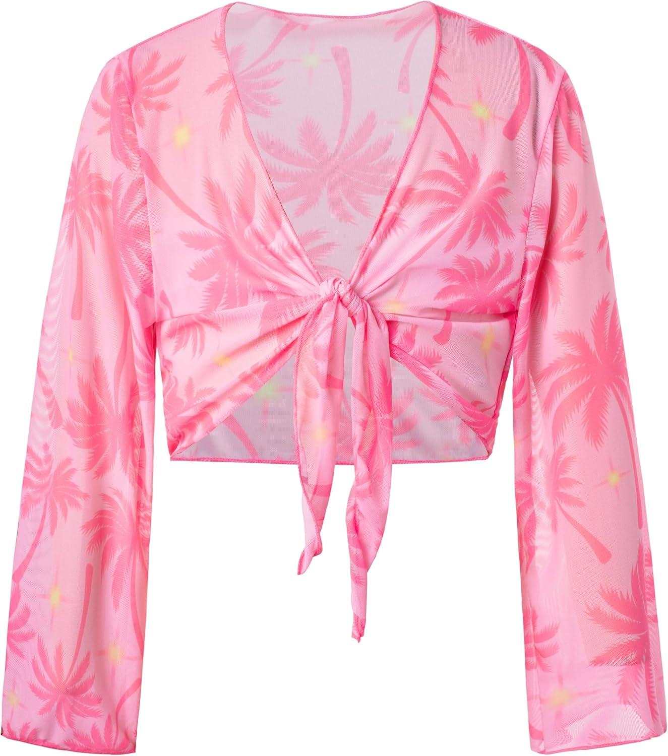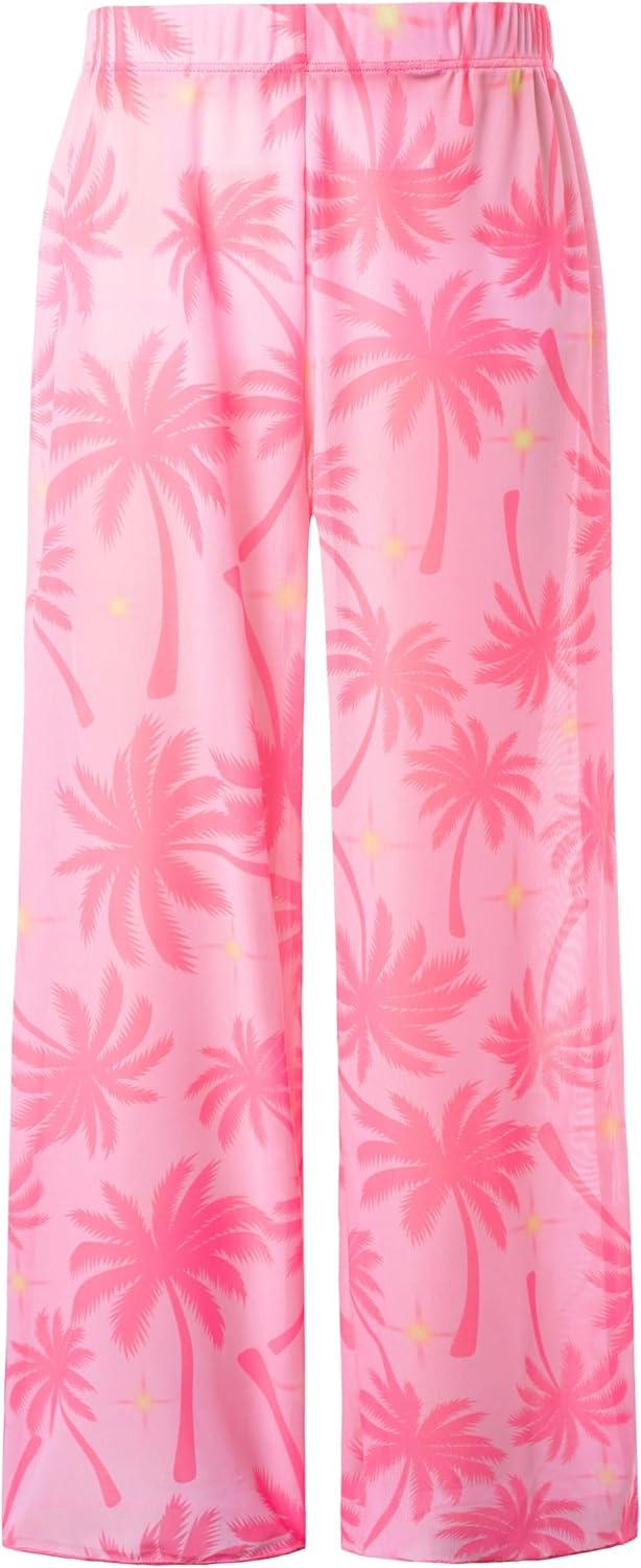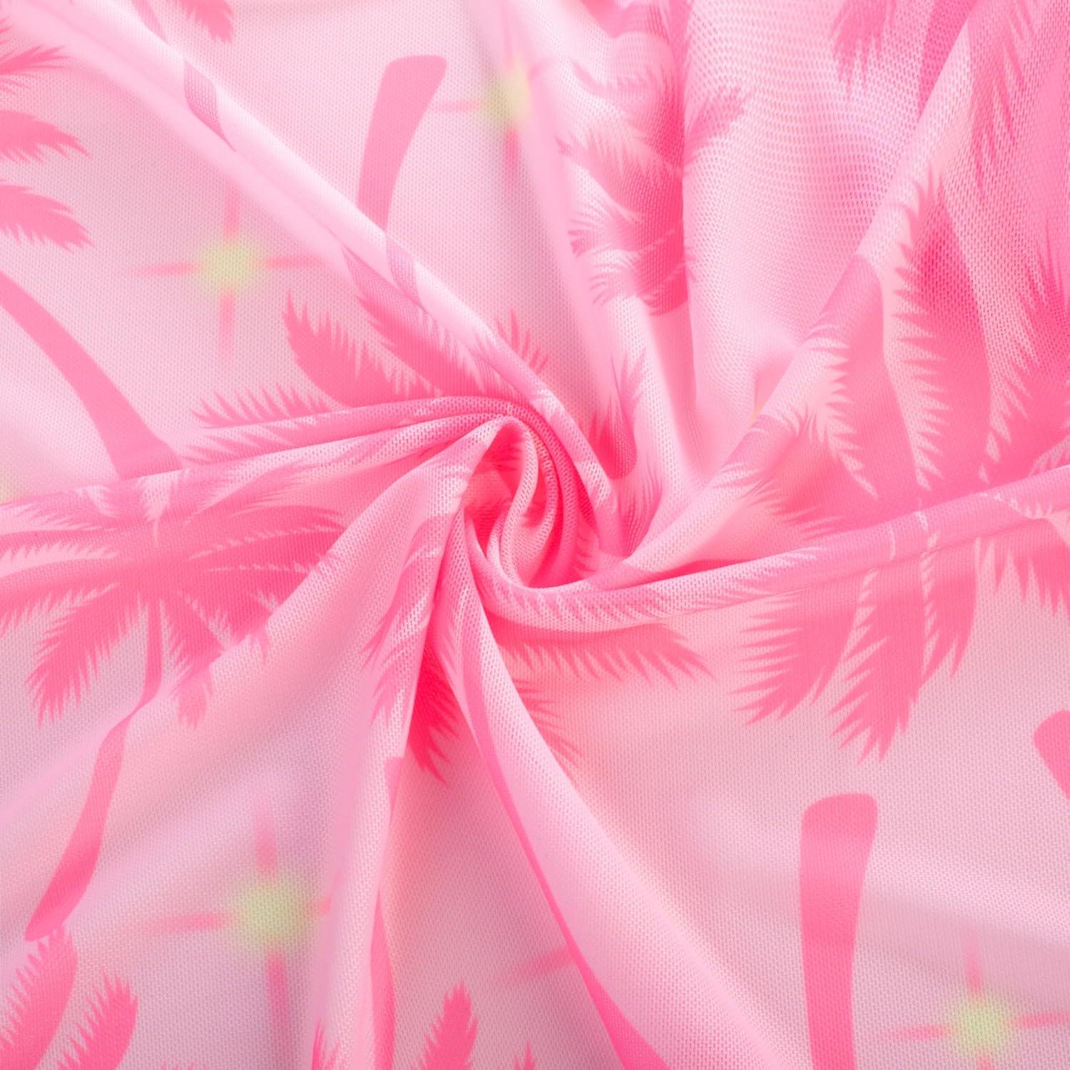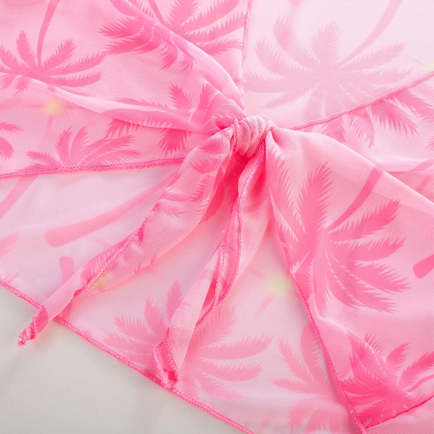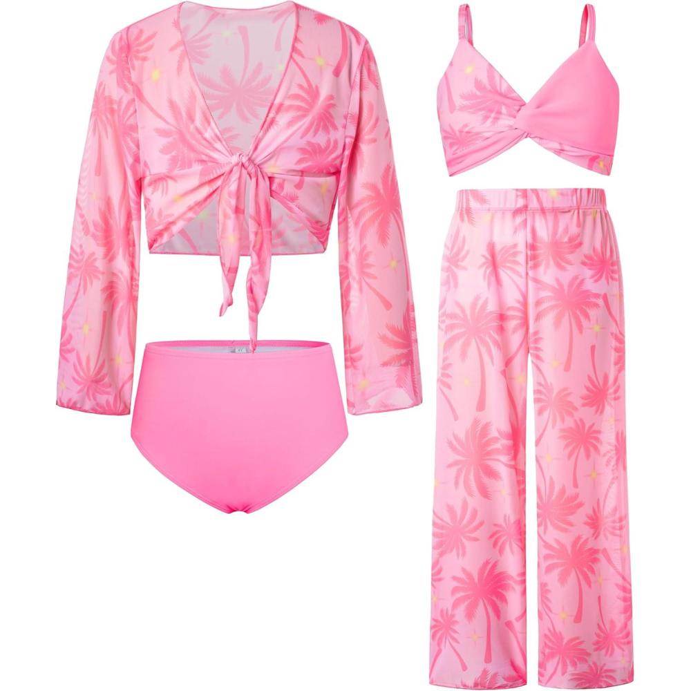 GRACE KARIN Teen Girls Bathing Suits Kids 4 Piece Long Sleeve Swimsuit Kimono Up Pants Bikini Tankini Set Swimwear(Pink-coconut Tree)