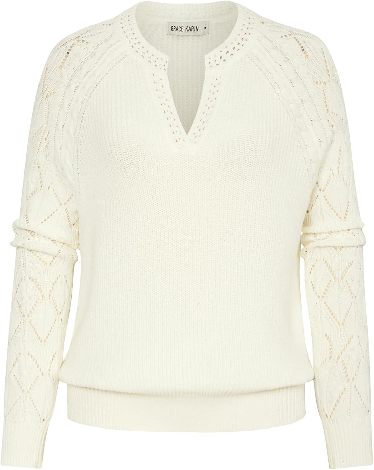 Discover the latest GRACE KARIN V Neck Sweater for Women Crochet Pullover Sweater Tops Cable Knit Sleeve Sweaters Spring Summer Fashion 2025(Ivory White) from and take advantage of our limited-time introductory offer.