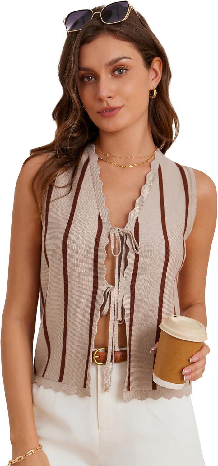 Save big on GRACE KARIN Vest Tops for Women Striped Sweater Vest 2025 Summer Y2k Cropped Button Up V Neck Sleeveless Tank Top(Apricot Striped) and accessories during our BOGO sale. Buy one, get one 50% off!