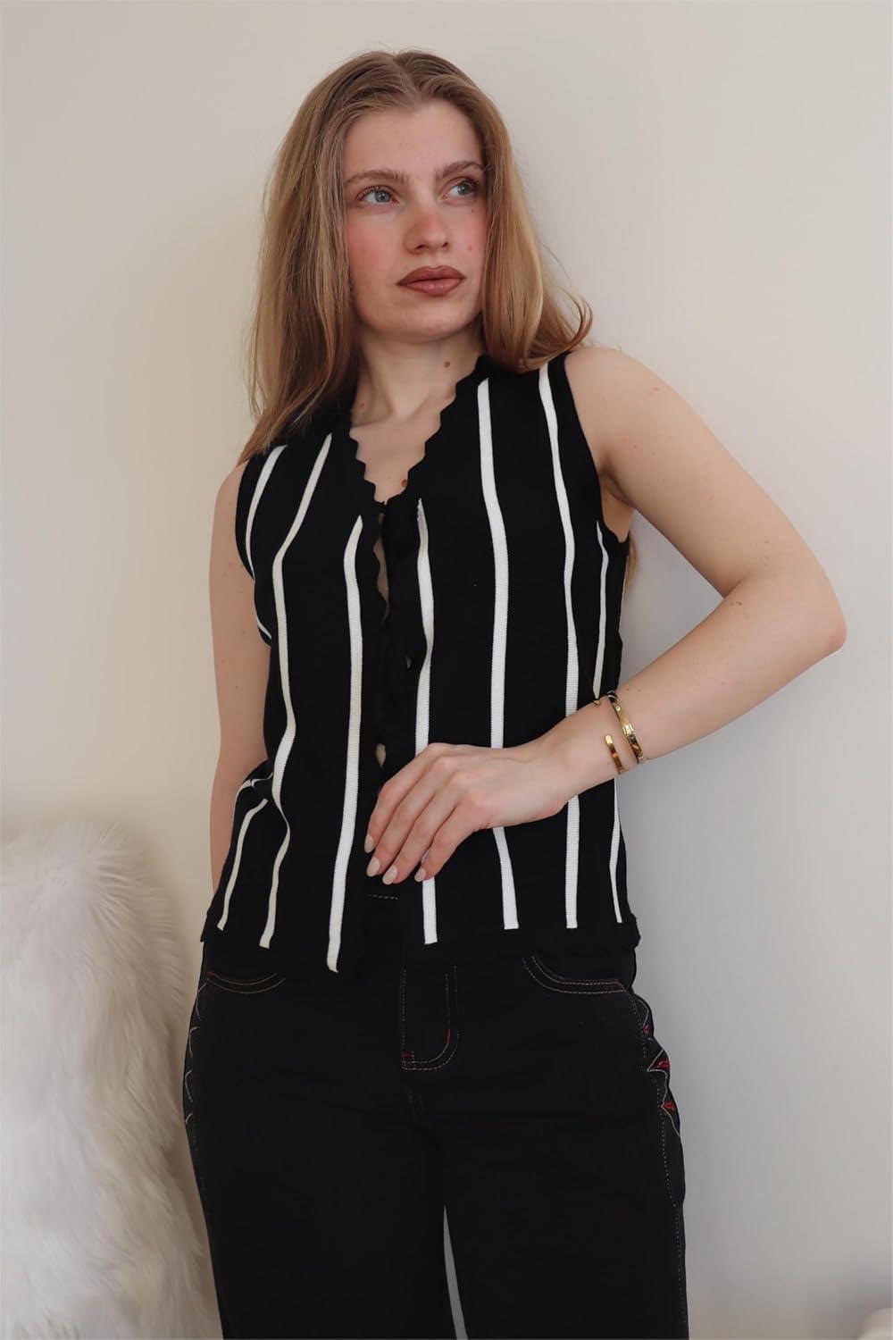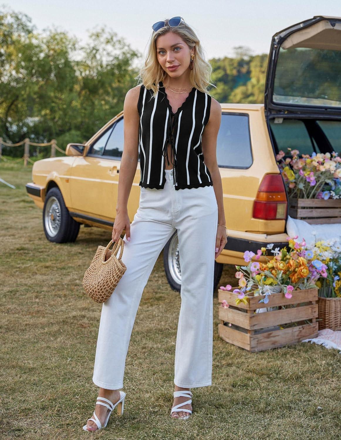 Be the first to review “GRACE KARIN Vest Tops for Women Striped Sweater Vest 2025 Summer Y2k Cropped Button Up V Neck Sleeveless Tank Top(Black Striped)” Cancel reply