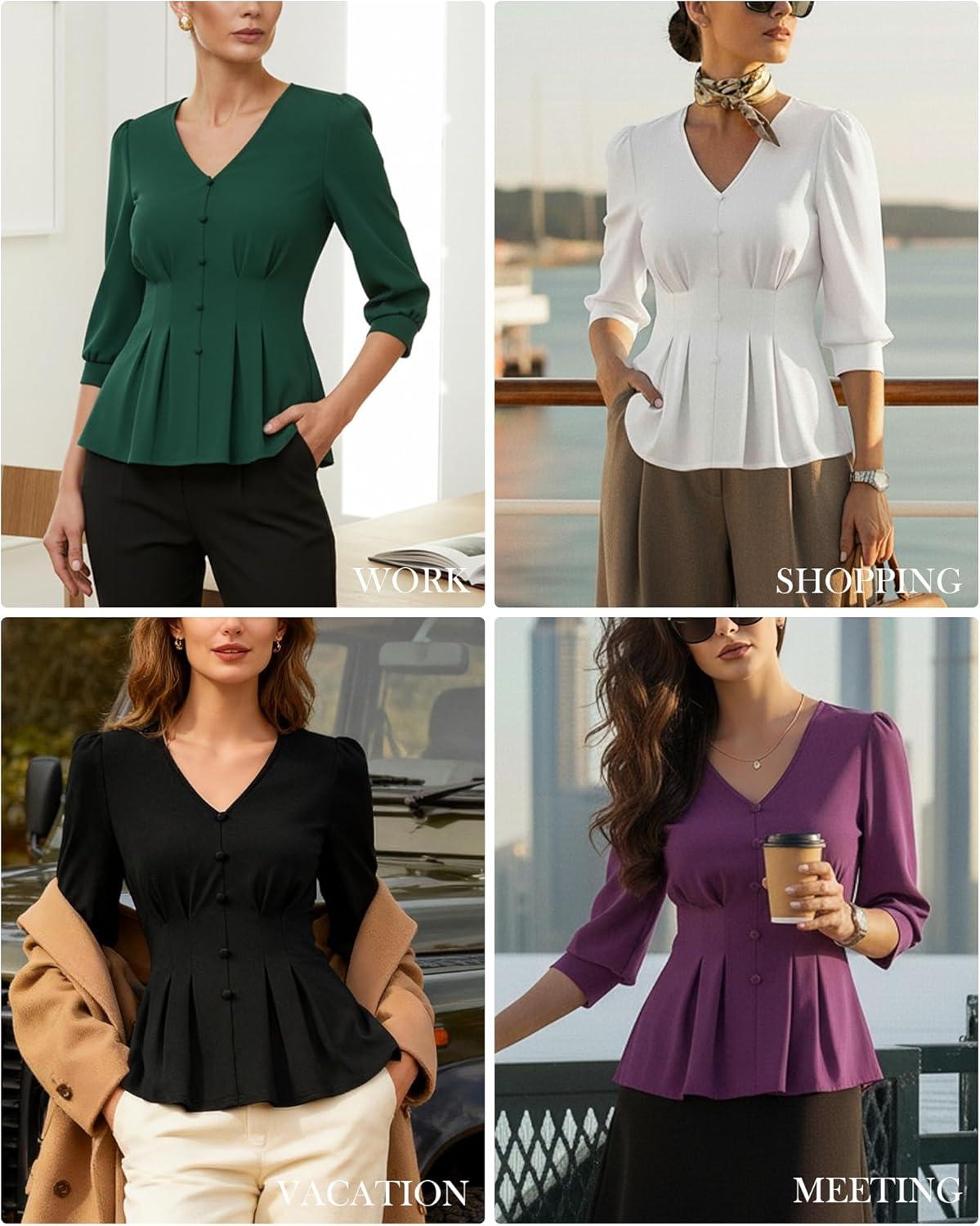 Don’t miss out on our limited-time offer: get a free {accessory} with your purchase of GRACE KARIN Women Business Casual Tops, 2025 Fall Trendy Dressy Blouses, 3/4 Sleeve Peplum Work Shirts V Neck Office Outfits(Purple).