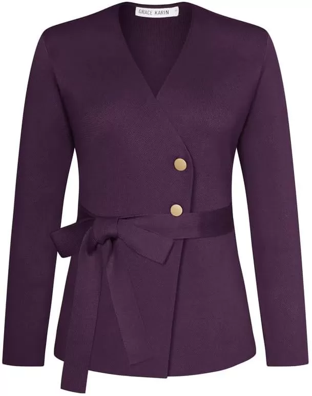 Save up to 40% on GRACE KARIN Women Business Cropped Blazer Cardigan Long Sleeve Open Front Knit Sweater Jacket Shrug for Fall with Belt(Dark Purple) styles during our end-of-season sale.