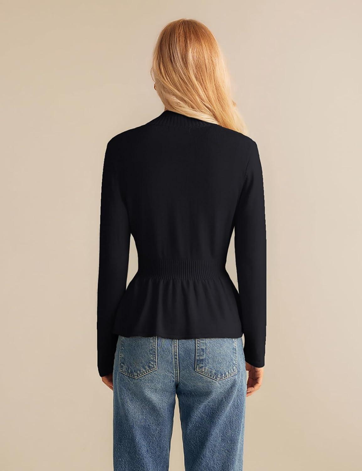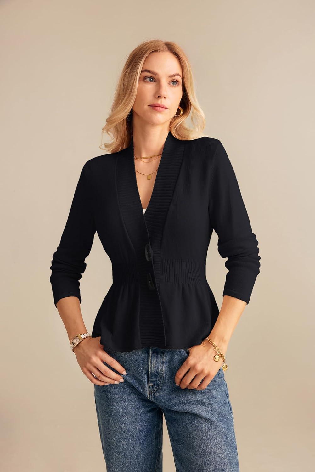 GRACE KARIN Women Cardigan Sweaters 2025 Fall,Long Sleeve Cropped Sweater Coat Trendy,Button Front Peplum Tops Lightweight(Black)