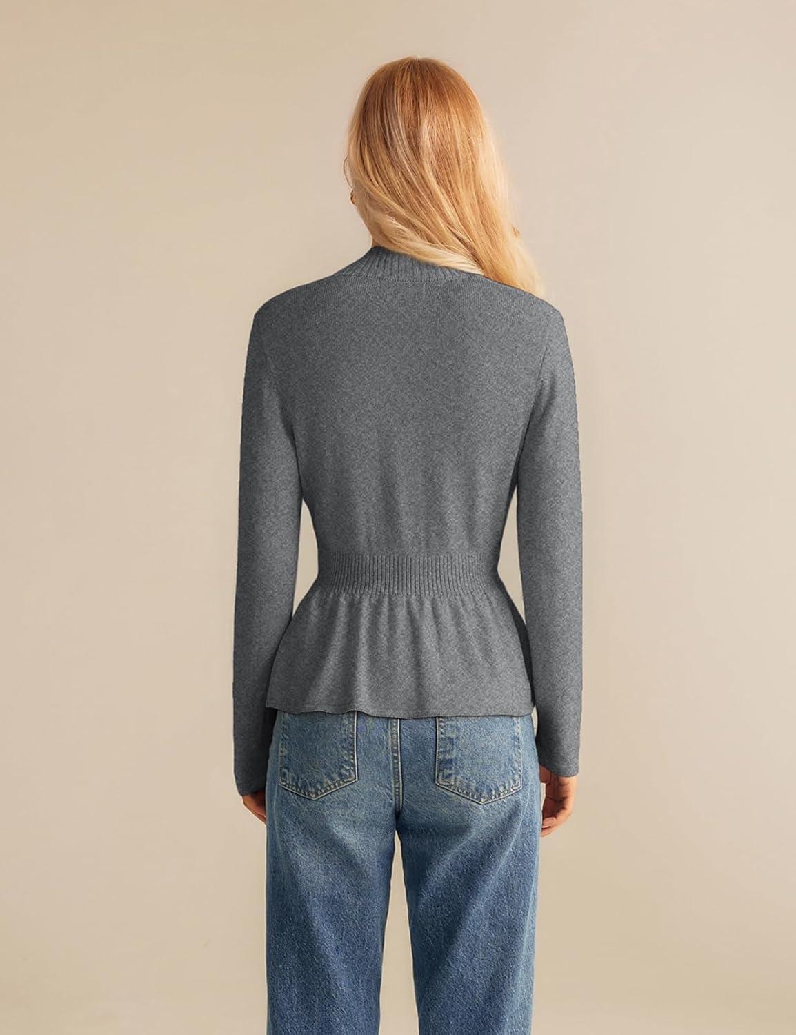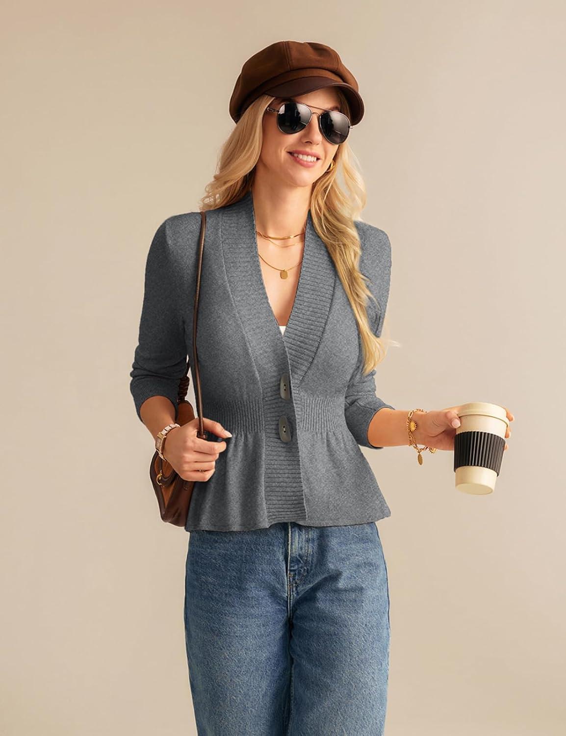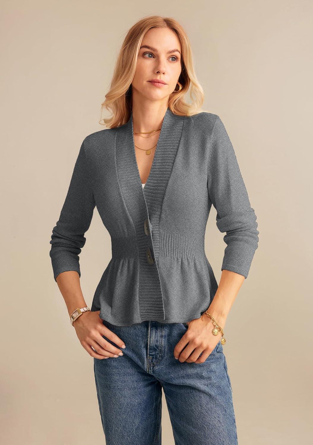 GRACE KARIN Women Cardigan Sweaters 2025 Fall,Long Sleeve Cropped Sweater Coat Trendy,Button Front Peplum Tops Lightweight(Gray)