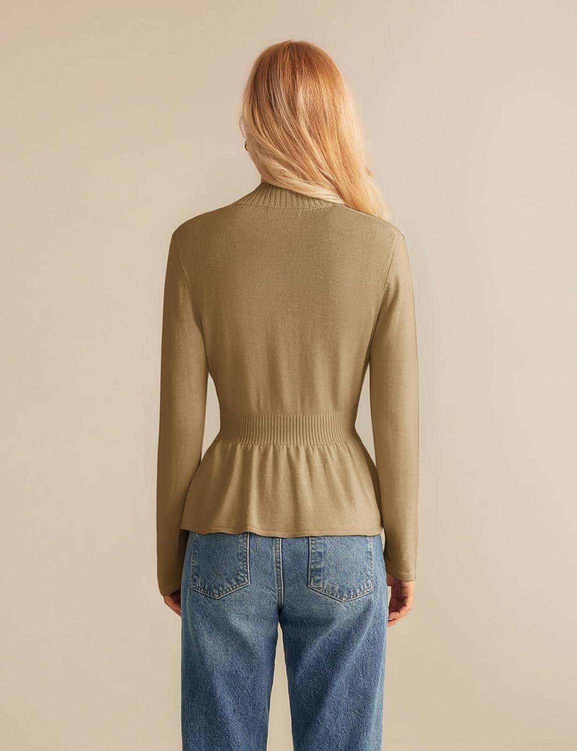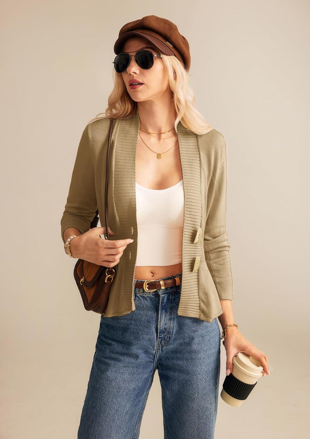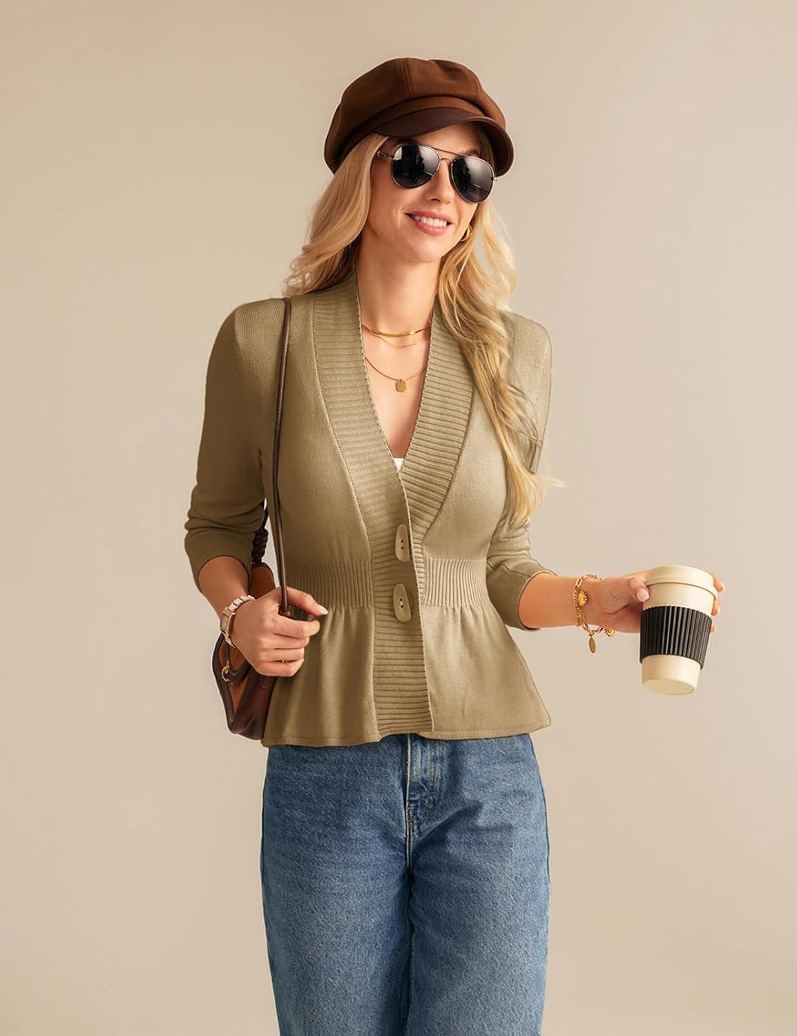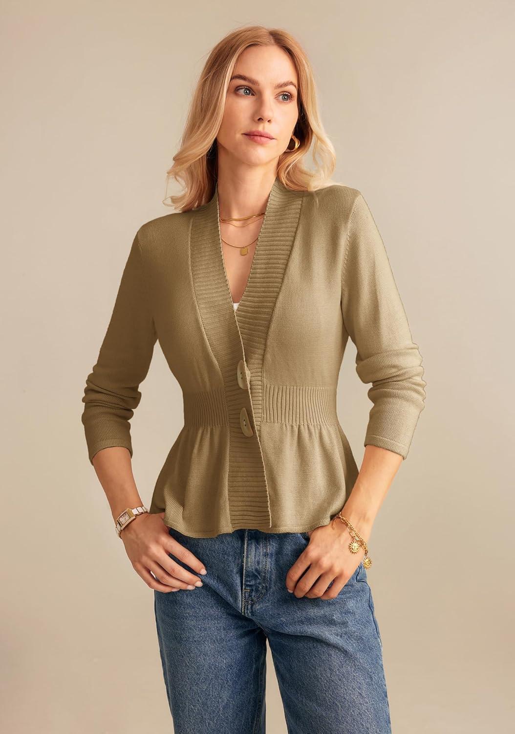 GRACE KARIN Women Cardigan Sweaters 2025 Fall,Long Sleeve Cropped Sweater Coat Trendy,Button Front Peplum Tops Lightweight(Khaki)