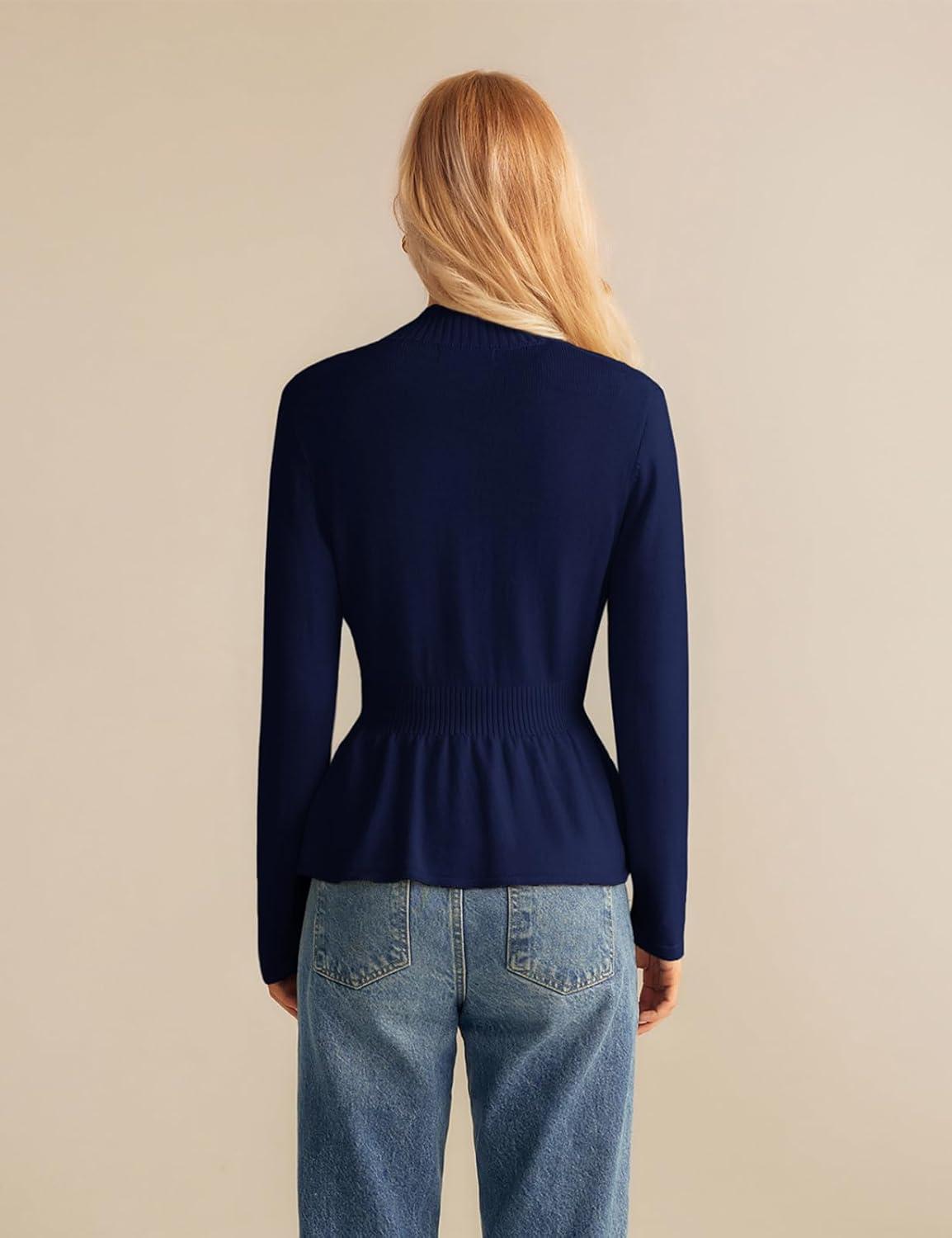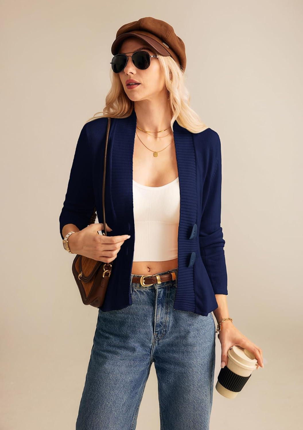 GRACE KARIN Women Cardigan Sweaters 2025 Fall,Long Sleeve Cropped Sweater Coat Trendy,Button Front Peplum Tops Lightweight(Navy Blue)