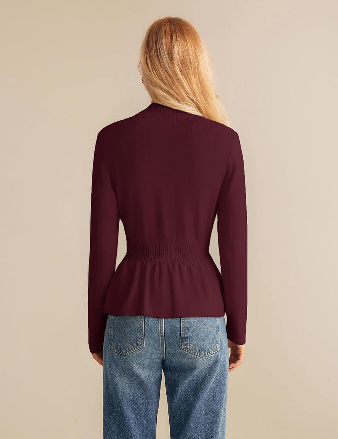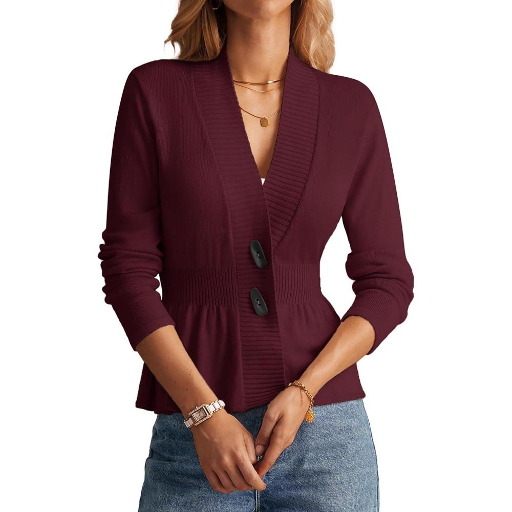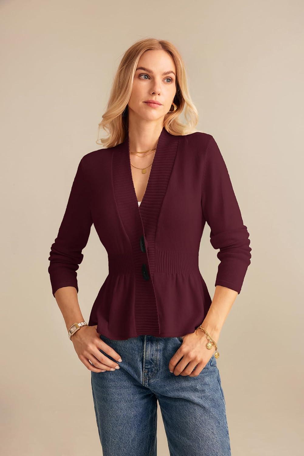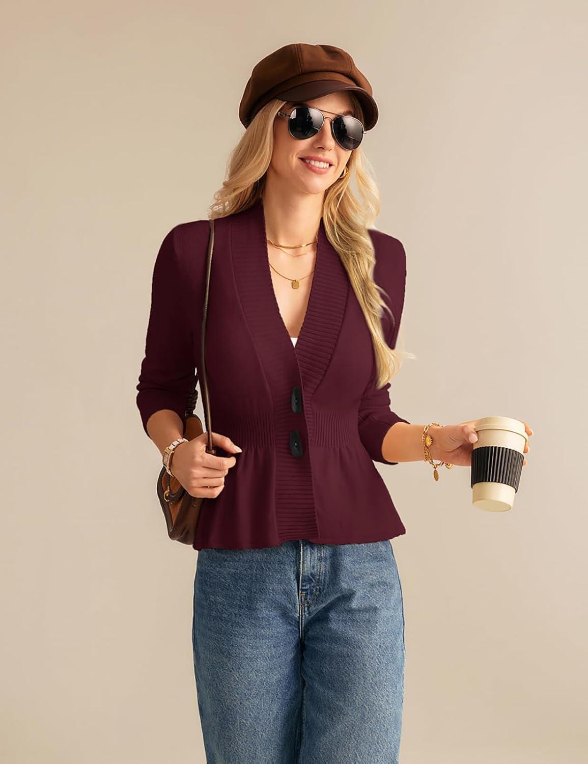 GRACE KARIN Women Cardigan Sweaters 2025 Fall,Long Sleeve Cropped Sweater Coat Trendy,Button Front Peplum Tops Lightweight(Wine Red)