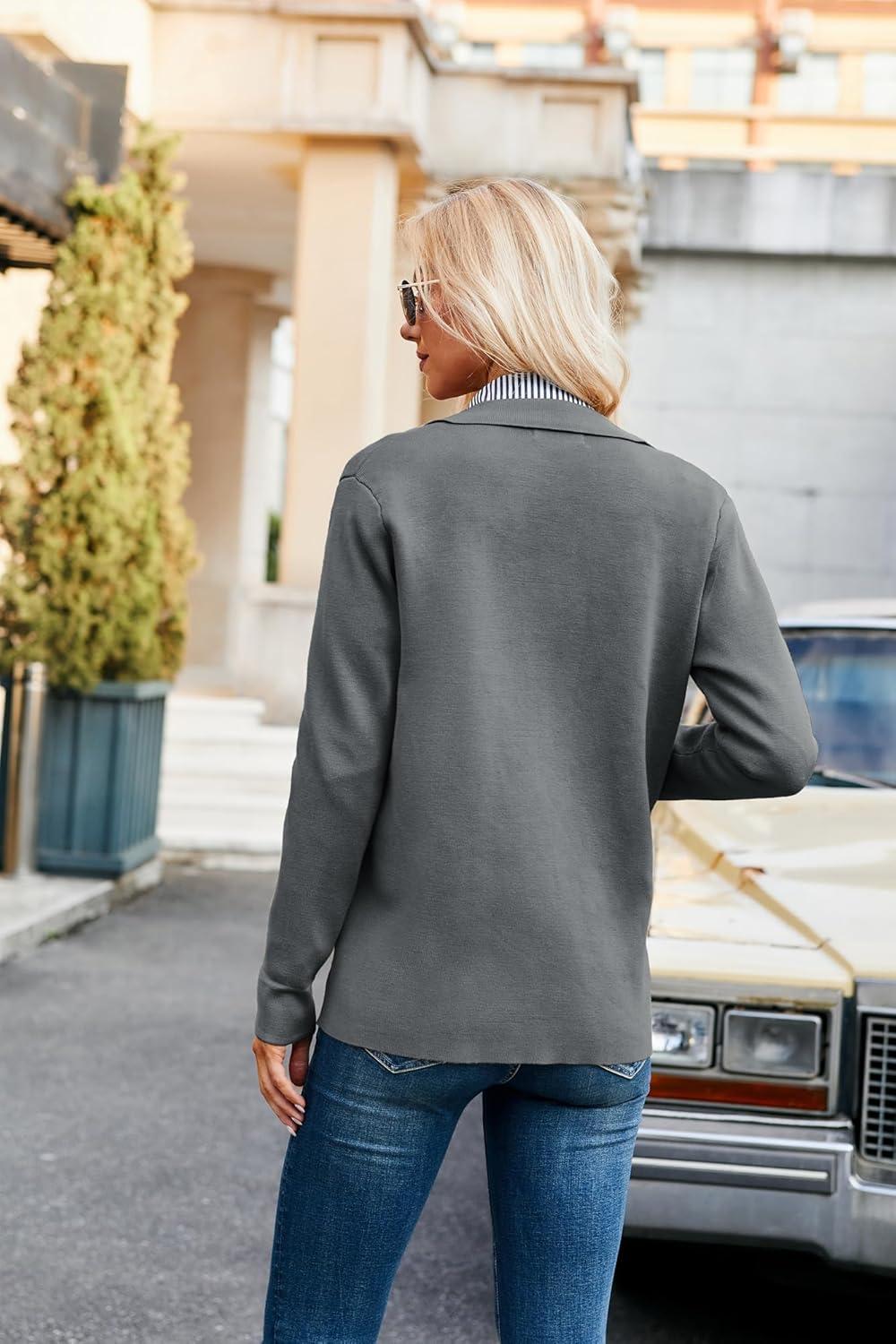 GRACE KARIN Women Casual Cardigan Knit Button Down Jacket Long Sleeve Sweater Blazer with Pockets(Dark Gray)