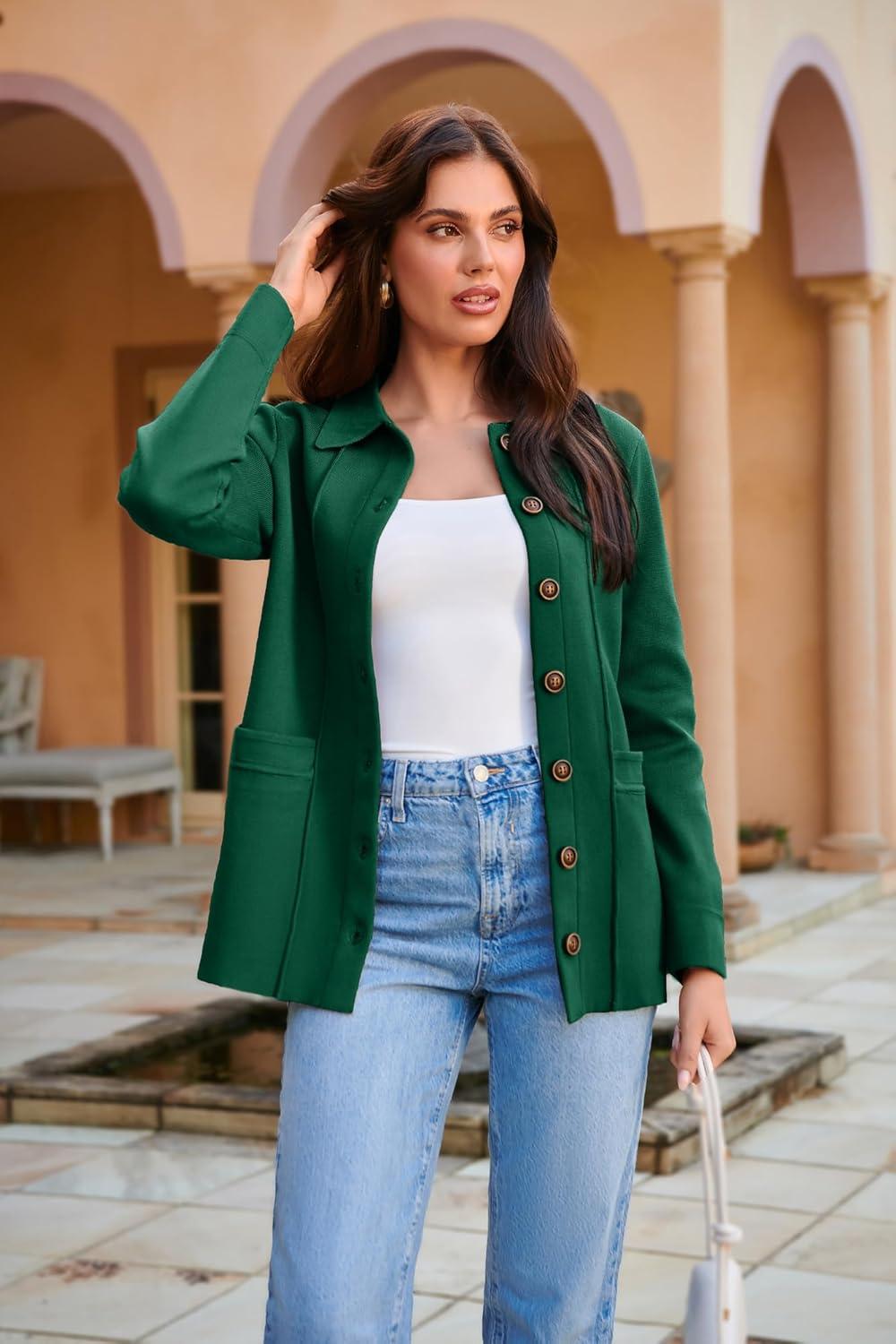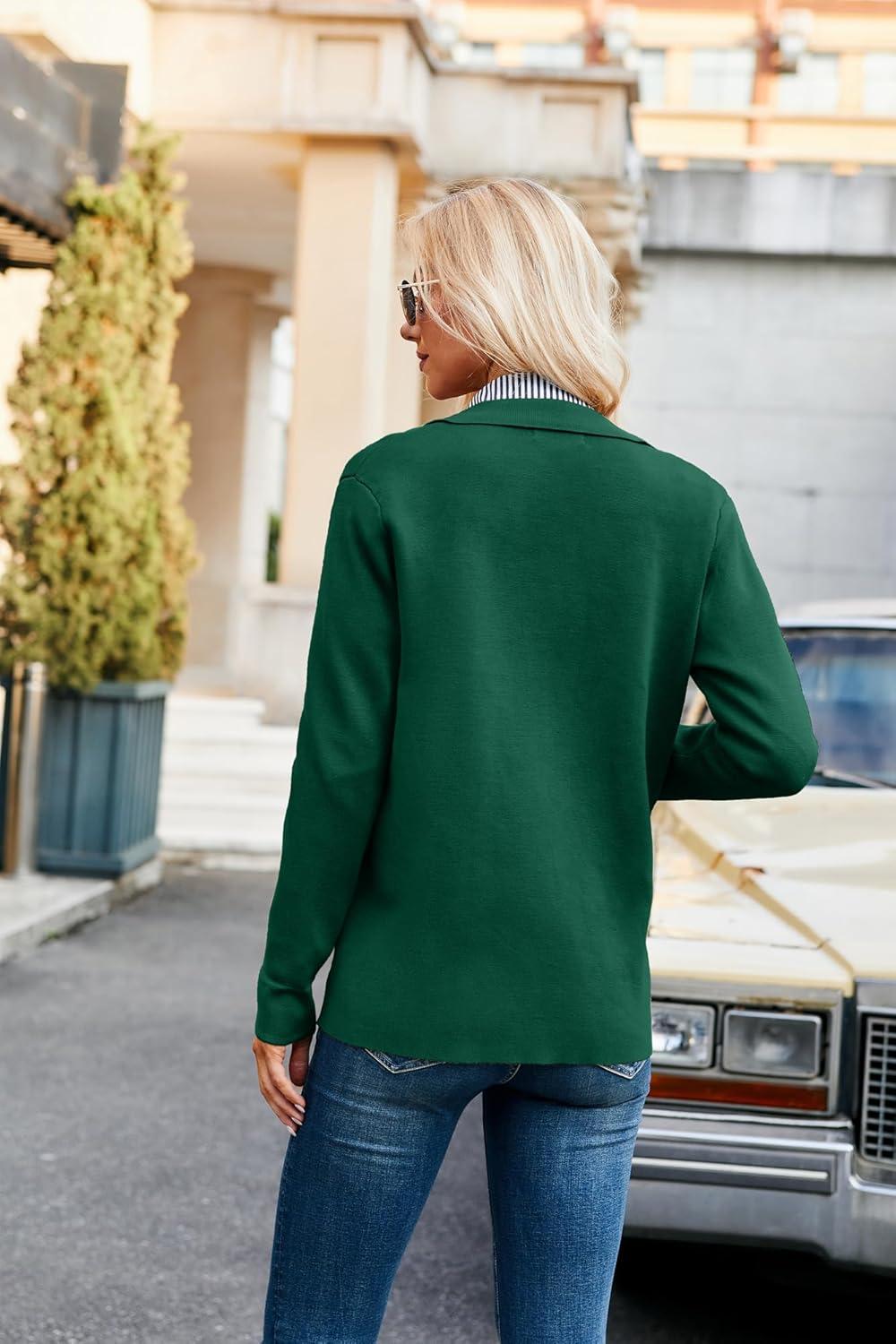 GRACE KARIN Women Casual Cardigan Knit Button Down Jacket Long Sleeve Sweater Blazer with Pockets(Green)