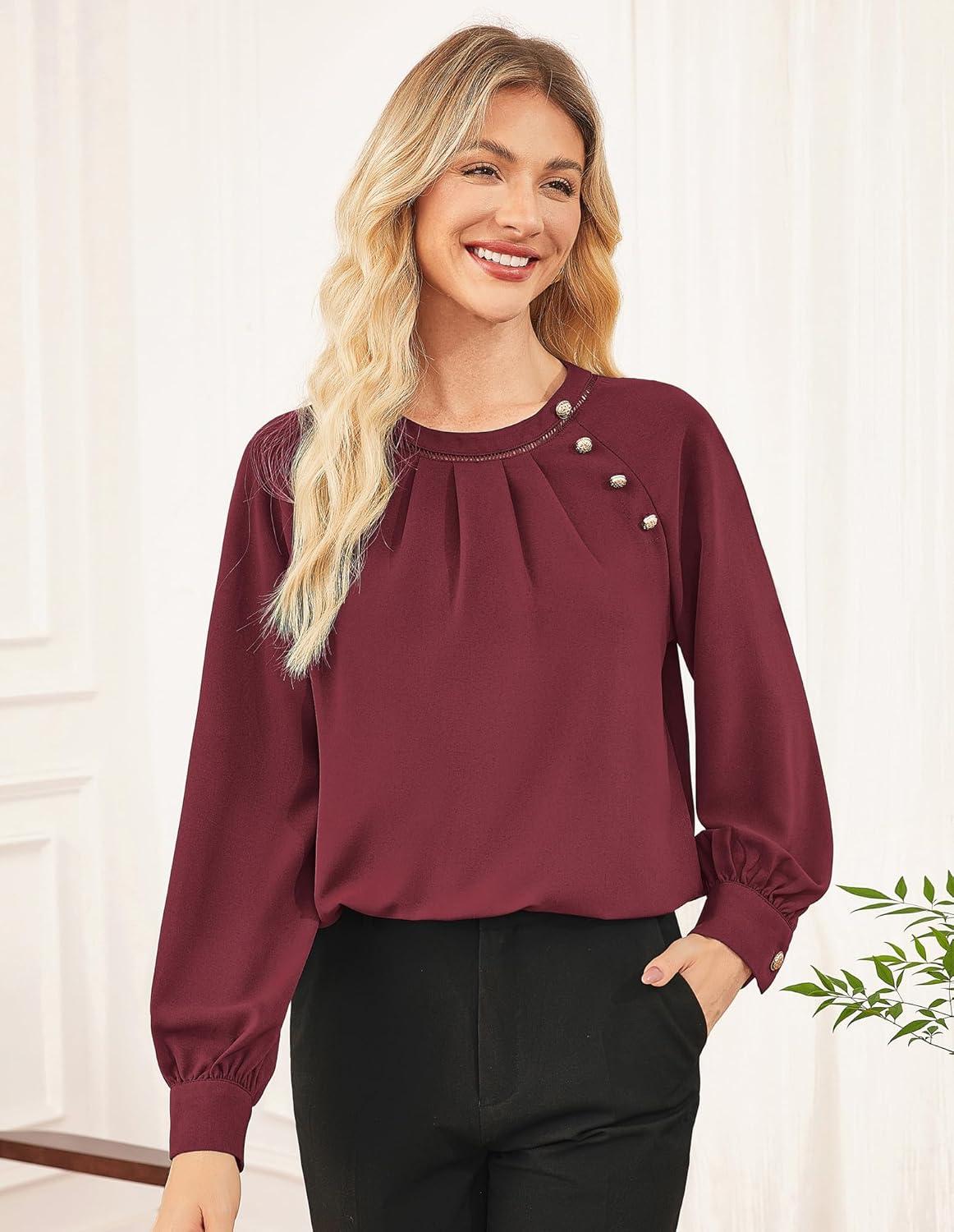 GRACE KARIN Women Casual Tops Trendy,Work Blouses 2025 Fall Outfits,Loose Fit Shirts Solid Wine Red M