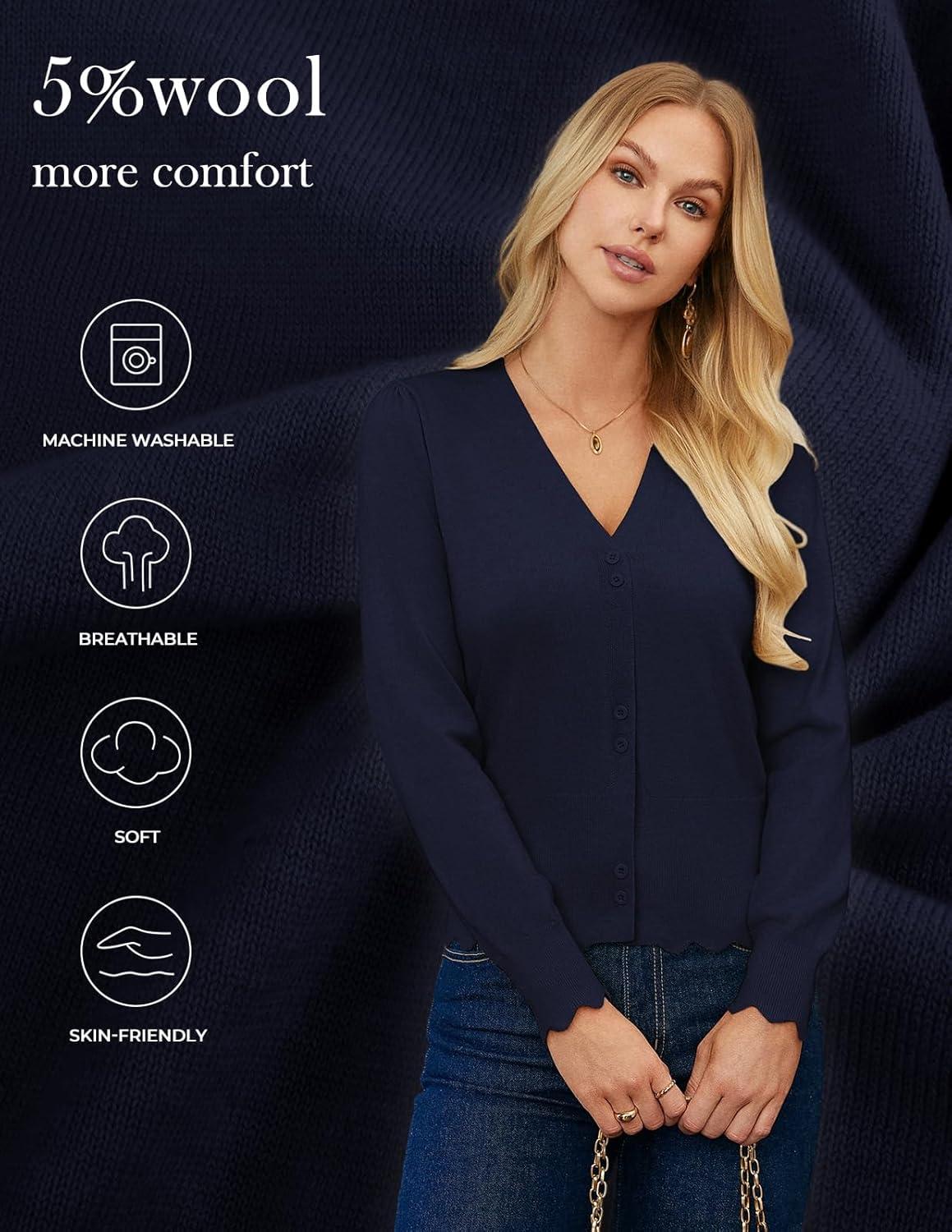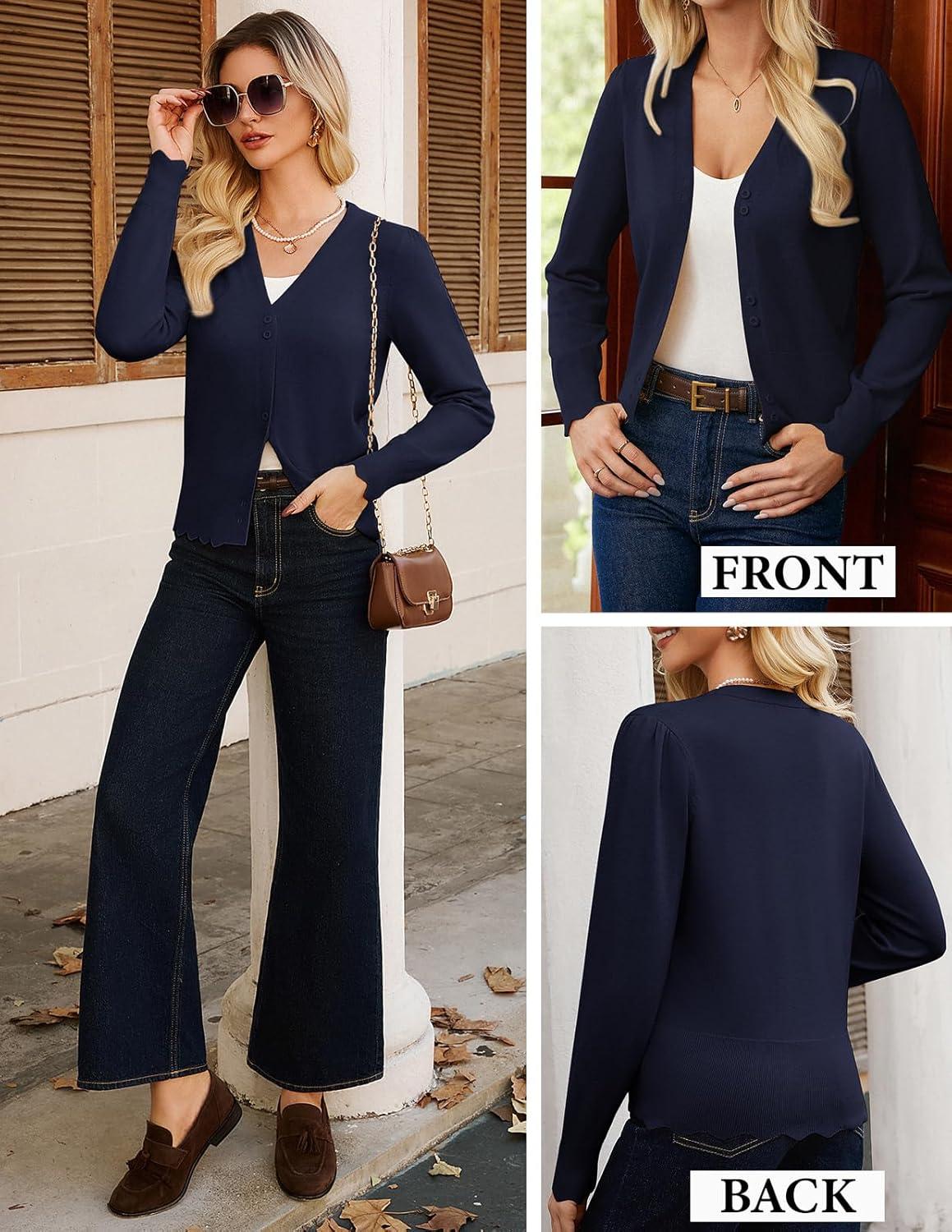 GRACE KARIN Women Cropped Cardigan Sweaters, Lightweight Long Sleeve Shrug, Button Up V Neck Knit Sweater Tops Fall(Navy Blue)