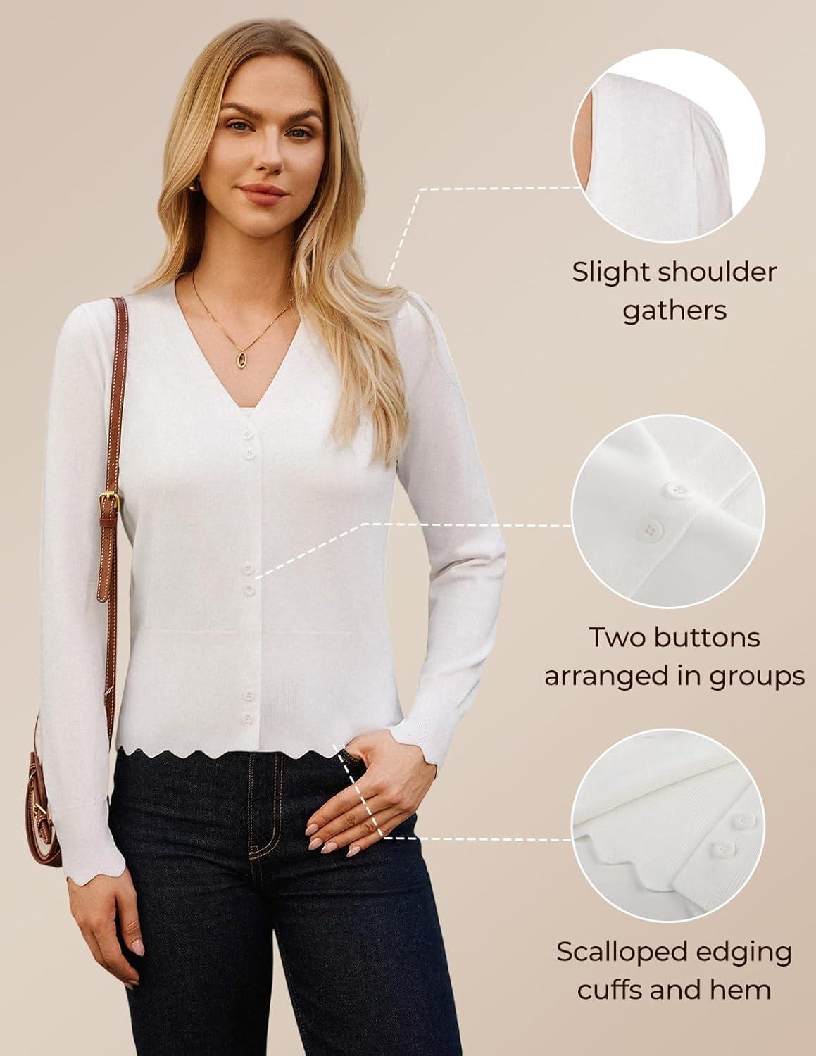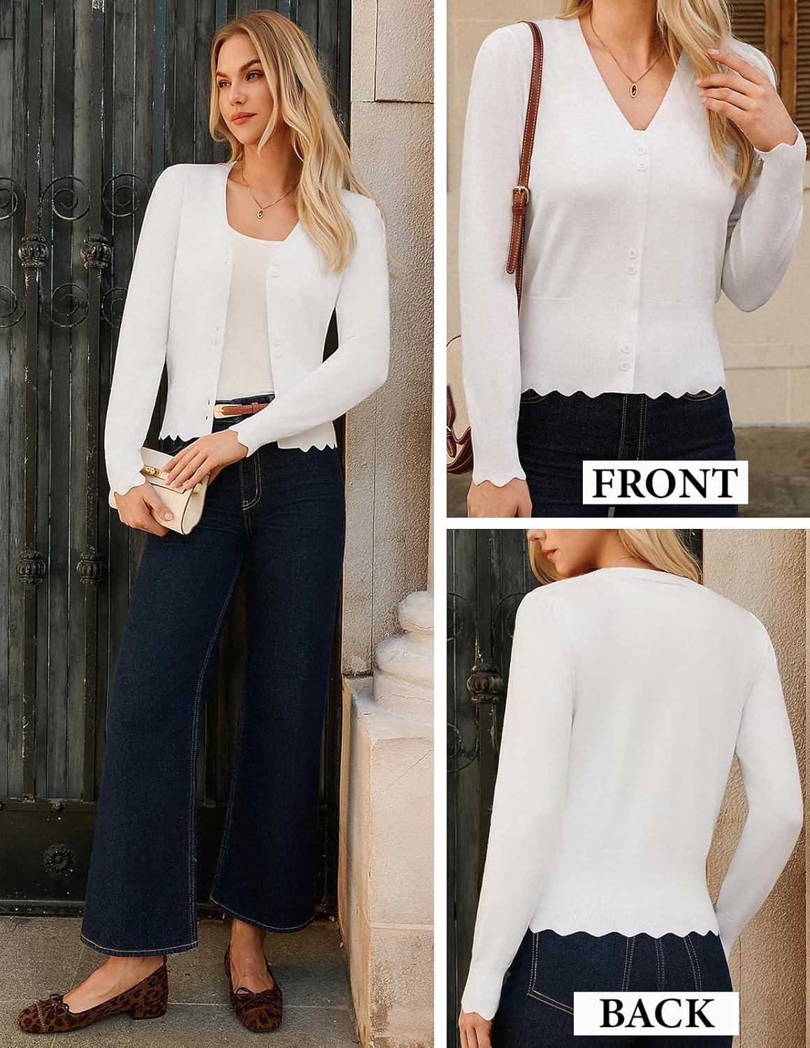 imageGRACE KARIN Women Cropped Cardigan Sweaters Lightweight Long Sleeve Shrug Button Up V Neck Knit Sweater Tops FallWhite