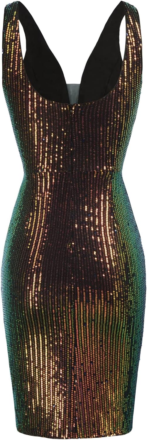 GRACE KARIN Women Deep V Neck Party Mini Dress U Back Sequin Irregular Hem Evening DressBlackrainbow