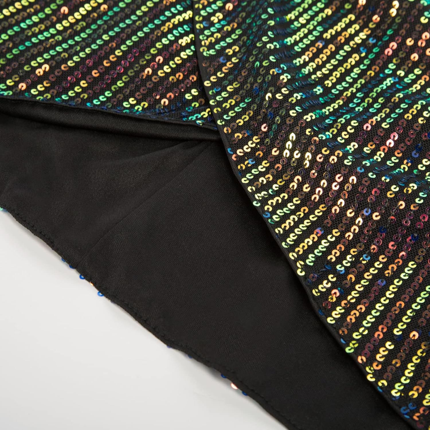 GRACE KARIN Women Deep V Neck Party Mini Dress U Back Sequin Irregular Hem Evening Dress(Black+rainbow)