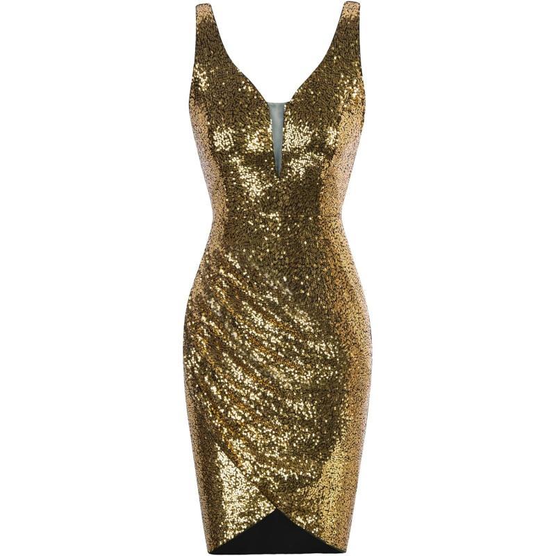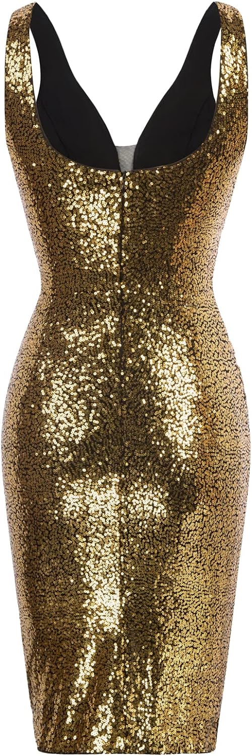 GRACE KARIN Women Deep V Neck Party Mini Dress U Back Sequin Irregular Hem Evening DressBronze Gold
