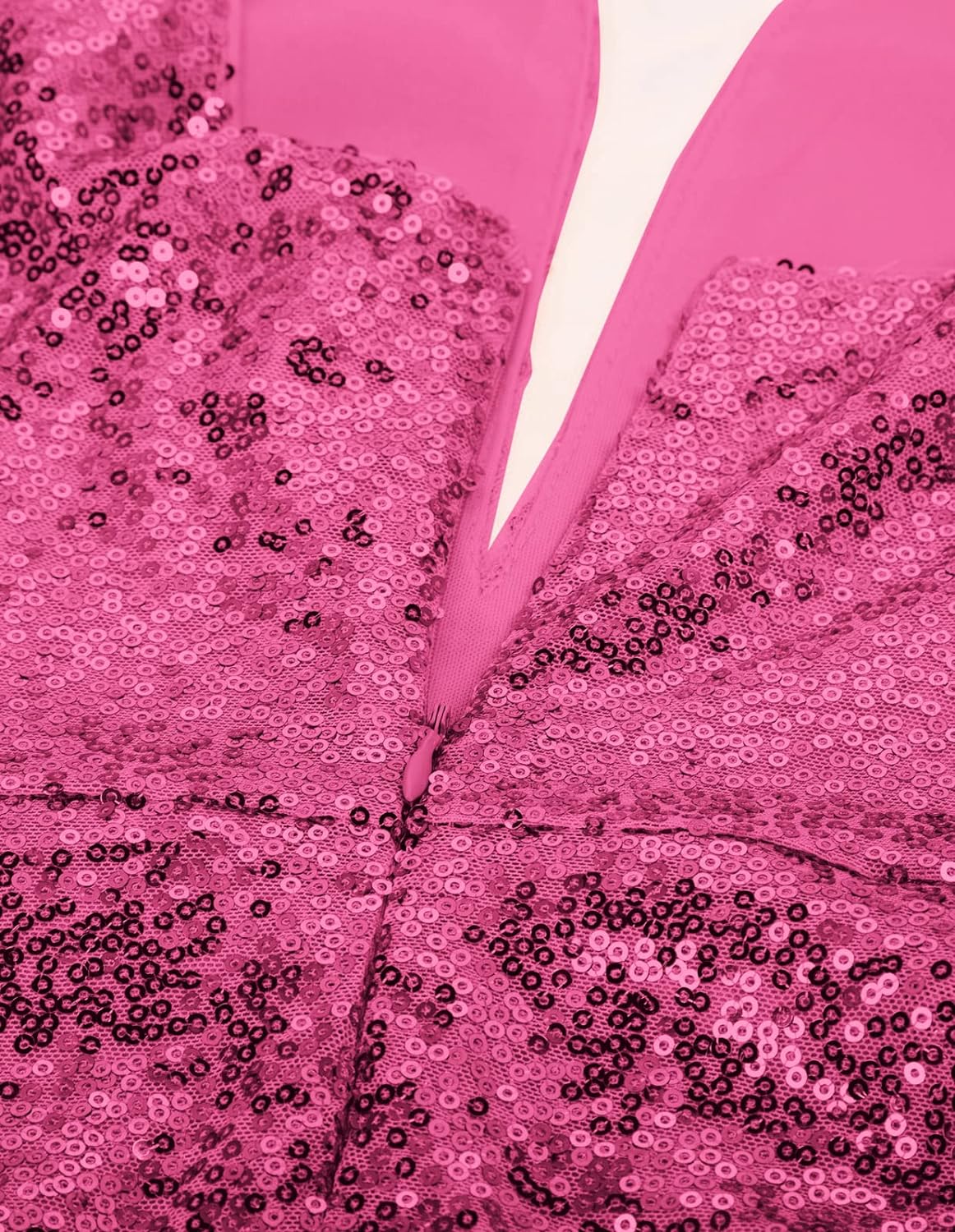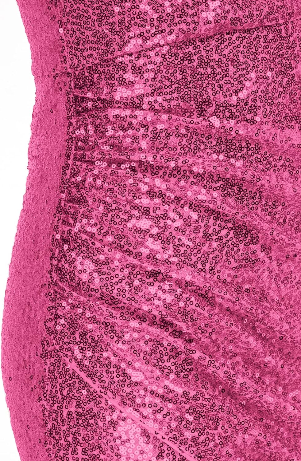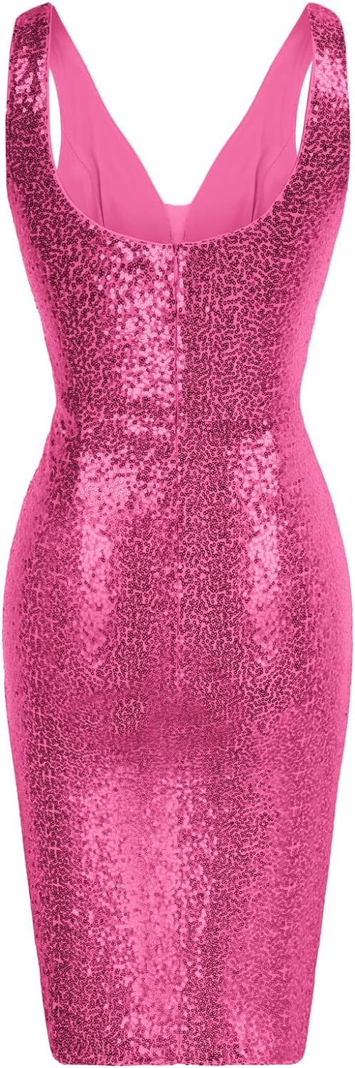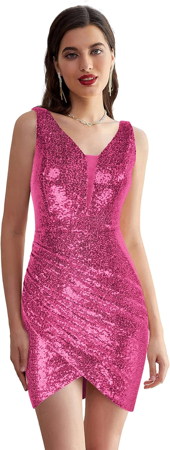 GRACE KARIN Women Deep V Neck Party Mini Dress U Back Sequin Irregular Hem Evening Dress(Rose Red-sequin)