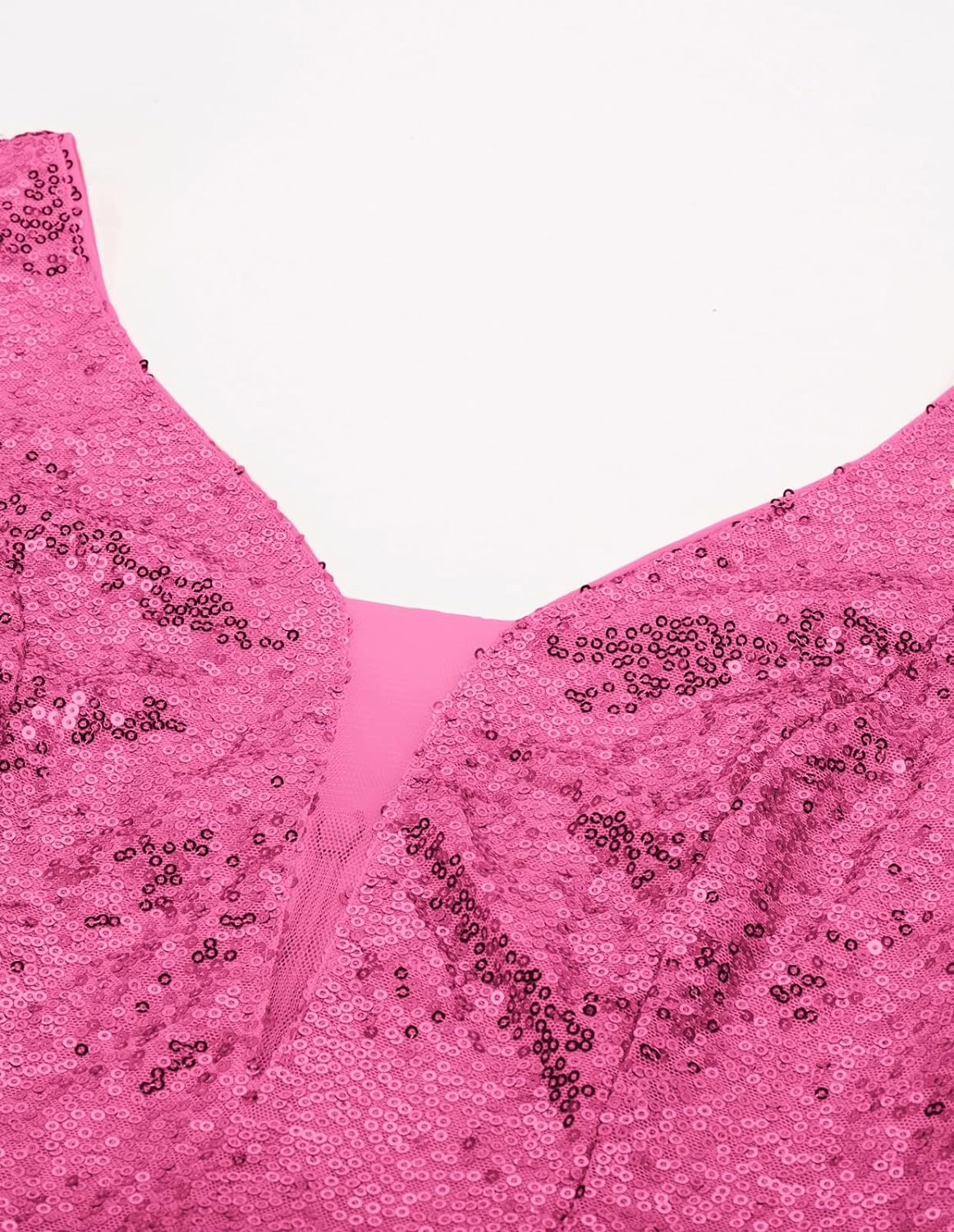 GRACE KARIN Women Deep V Neck Party Mini Dress U Back Sequin Irregular Hem Evening DressRose Redsequin