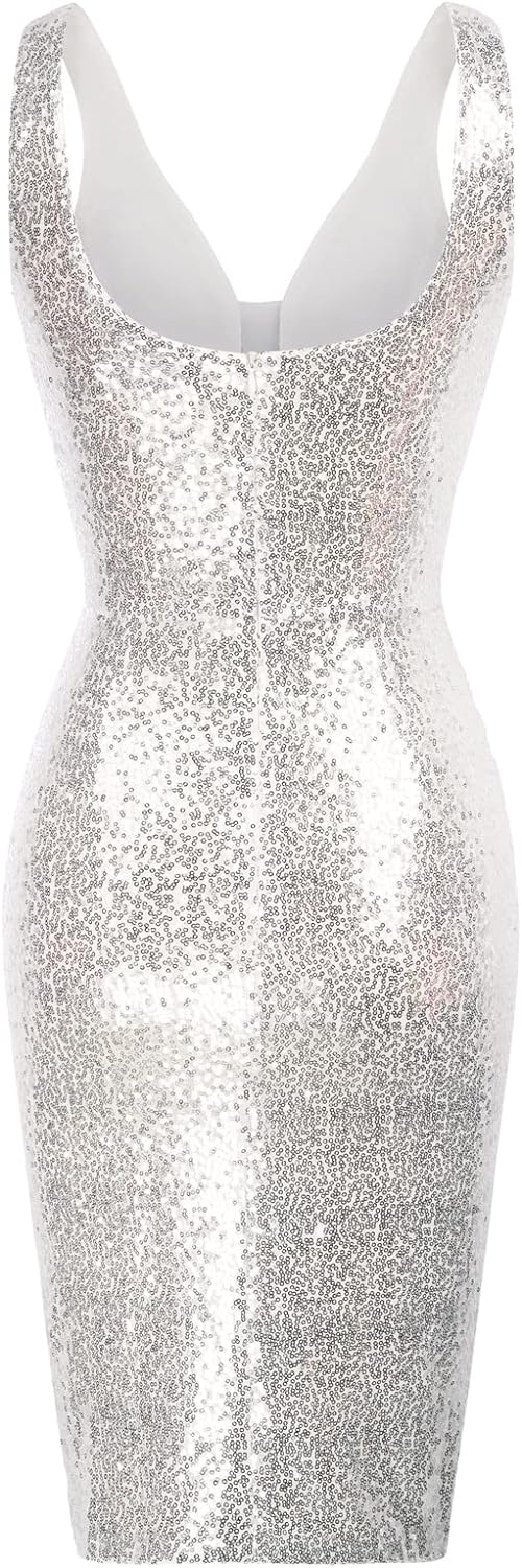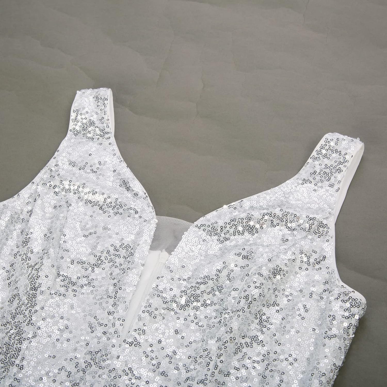GRACE KARIN Women Deep V Neck Party Mini Dress U Back Sequin Irregular Hem Evening DressSilver White