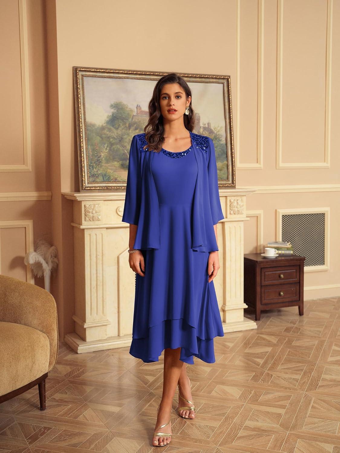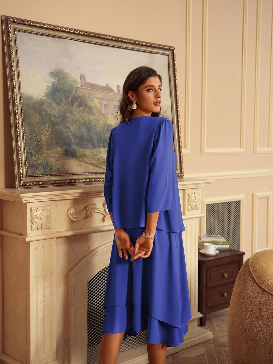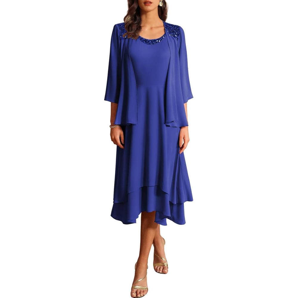 imageGRACE KARIN Women Dresses for Party Formal 2024 Mother of The Bride Dress Wedding Guest Dress with Sequin Jacket LongRoyal Blue
