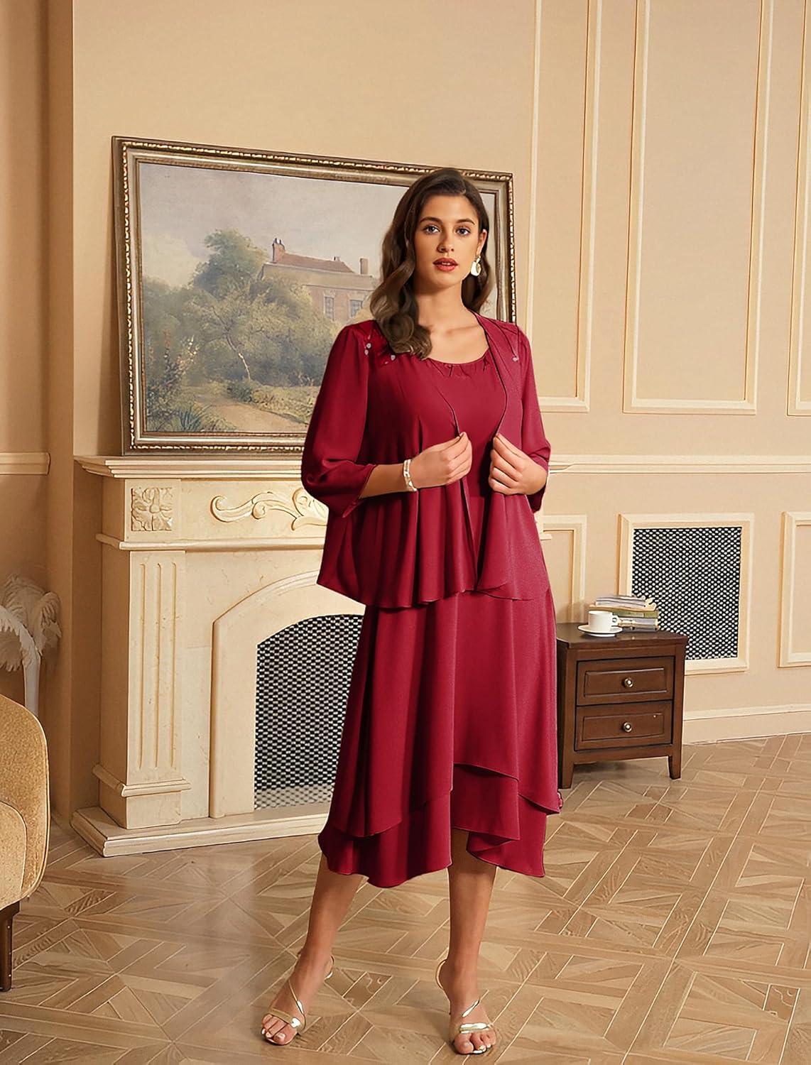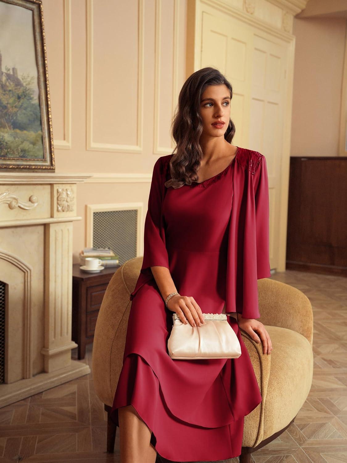 GRACE KARIN Women Dresses for Party Formal 2025 Mother of The Bride Dress Wedding Guest Dress with Jacket(Burgundy)