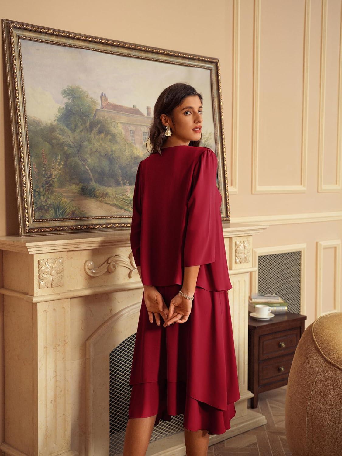 imageGRACE KARIN Women Dresses for Party Formal 2025 Mother of The Bride Dress Wedding Guest Dress with JacketBurgundy