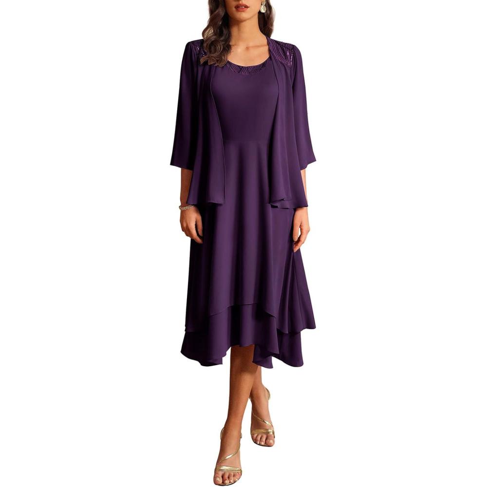 GRACE KARIN Women Dresses for Party Formal 2025 Mother of The Bride Dress Wedding Guest Dress with Jacket(Dark Purple)