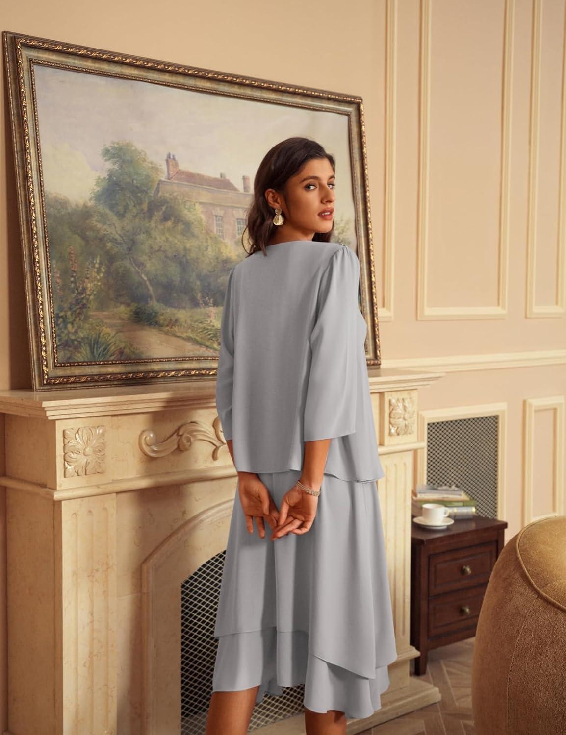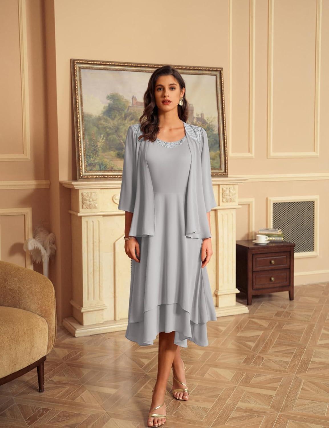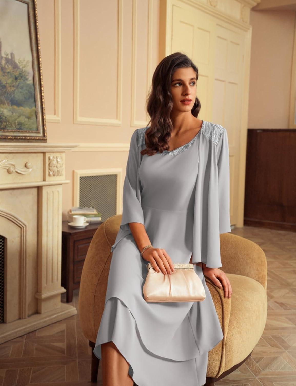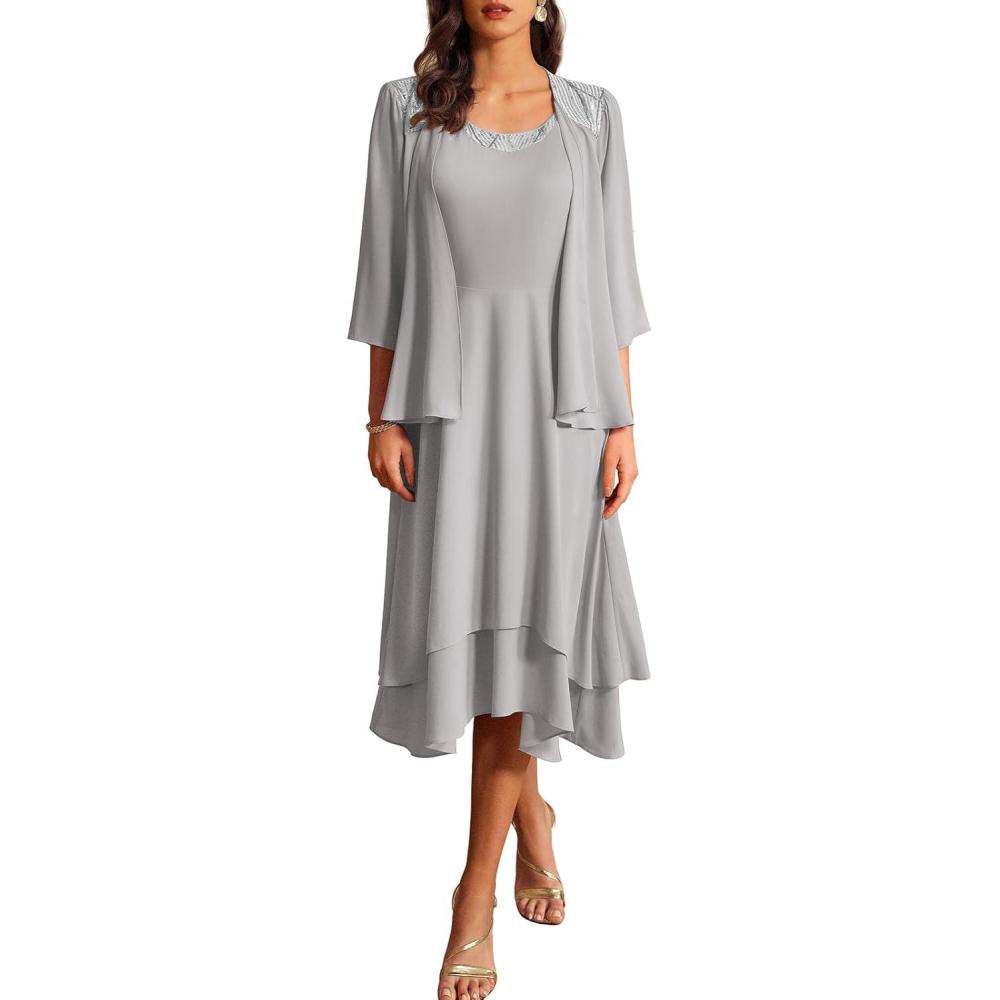 GRACE KARIN Women Dresses for Party Formal 2025 Mother of The Bride Dress Wedding Guest Dress with Jacket(Silver Gray)