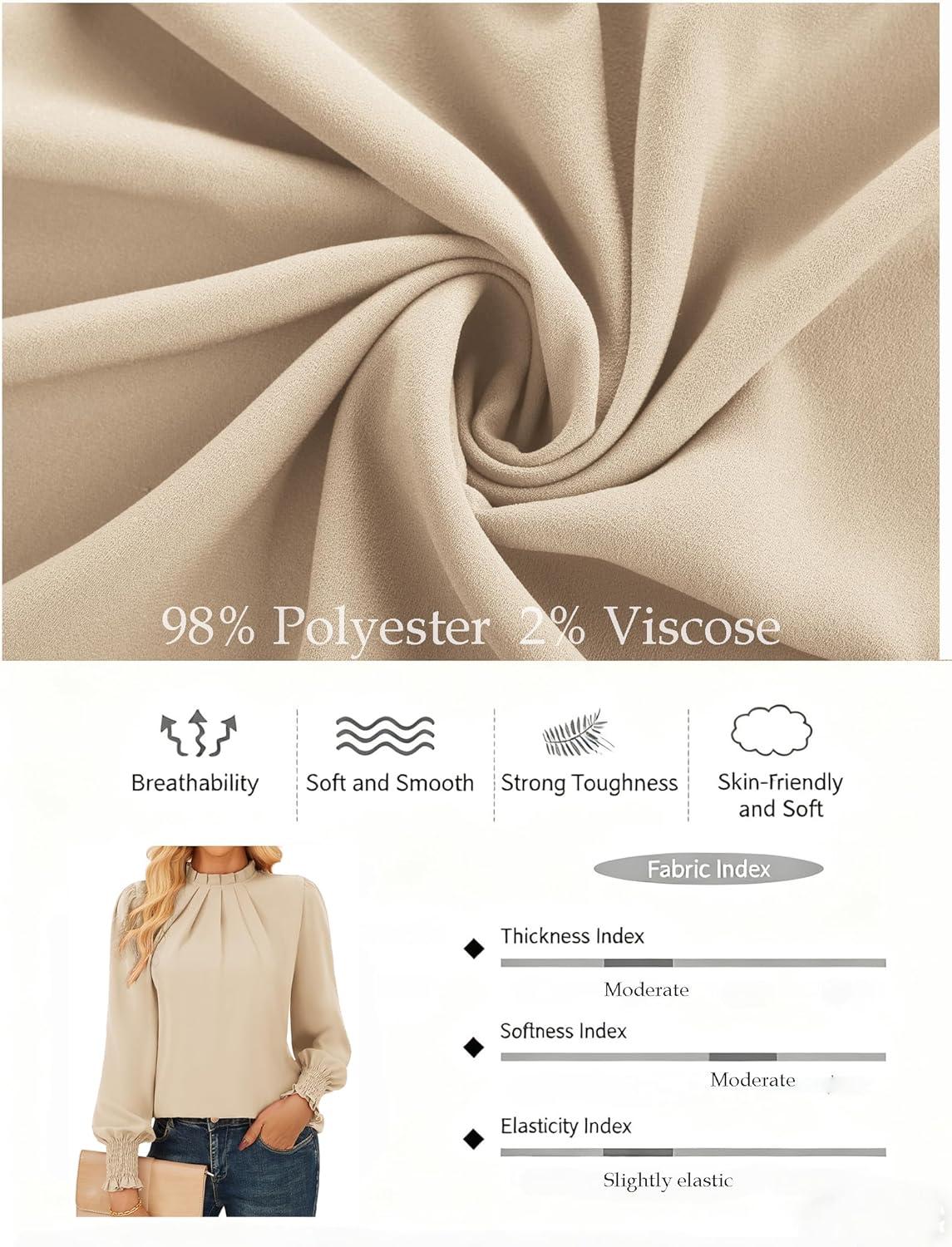 GRACE KARIN Women Dressy Long Sleeve Blouse,2025 Fall Business Casual Tops,Pleated Mock Neck Shirts Fashion Work Outfit(Apricot)