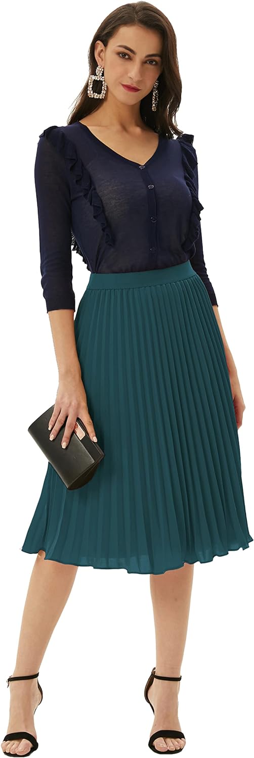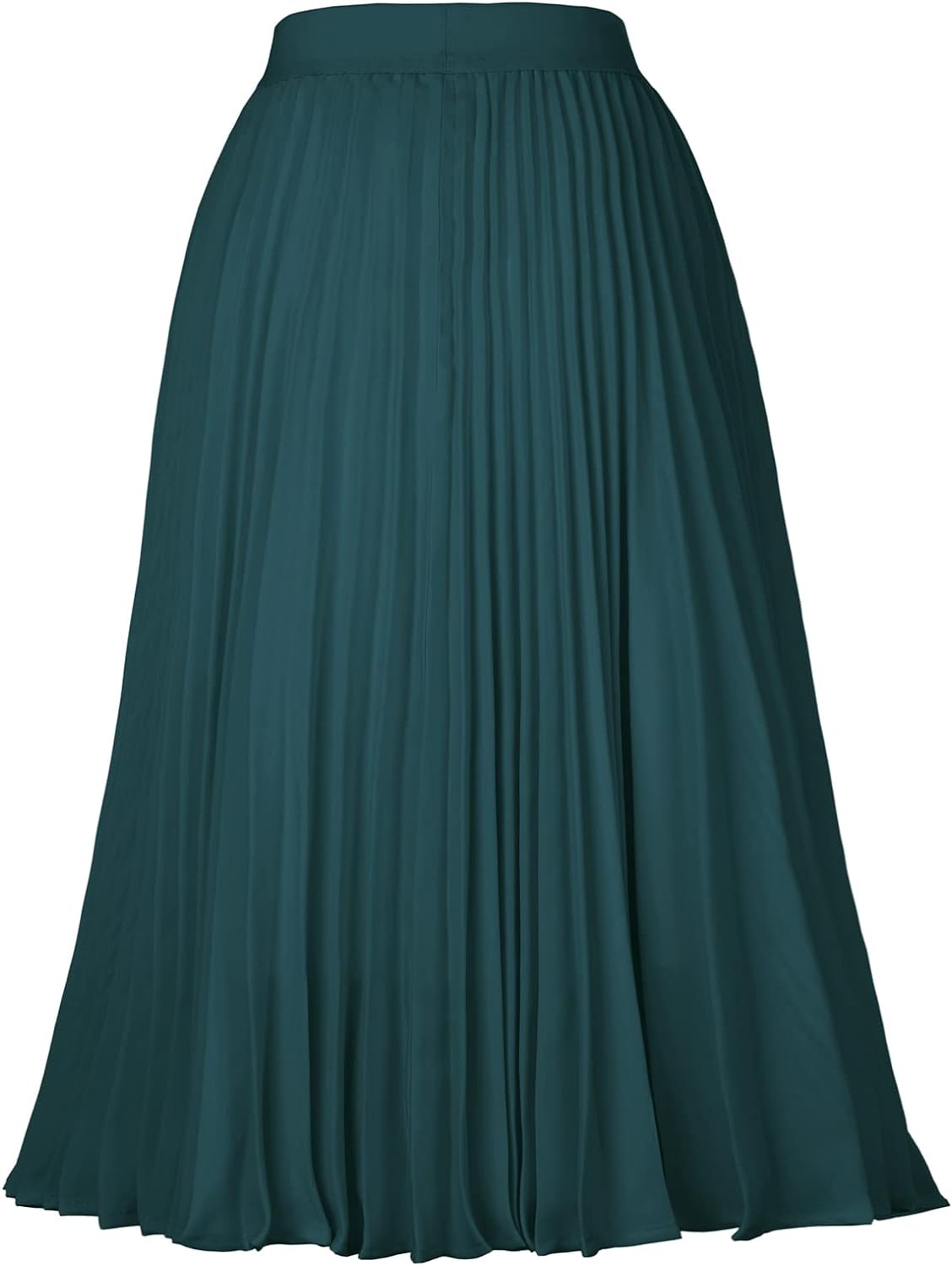 GRACE KARIN Women High Elastic Waist Pleated Chiffon Skirt Midi Swing Aline SkirtsBlackish Green