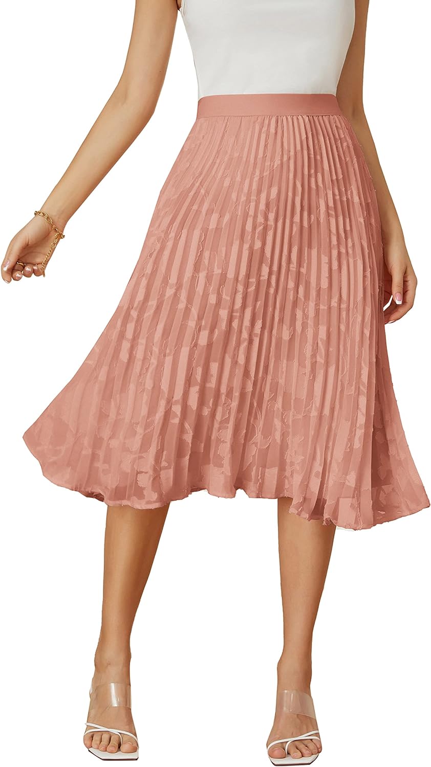 GRACE KARIN Women High Elastic Waist Pleated Chiffon Skirt Midi Swing Aline SkirtsFloralc