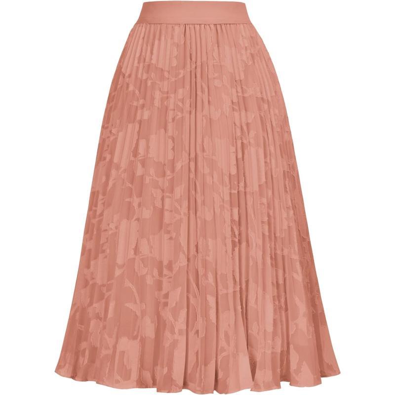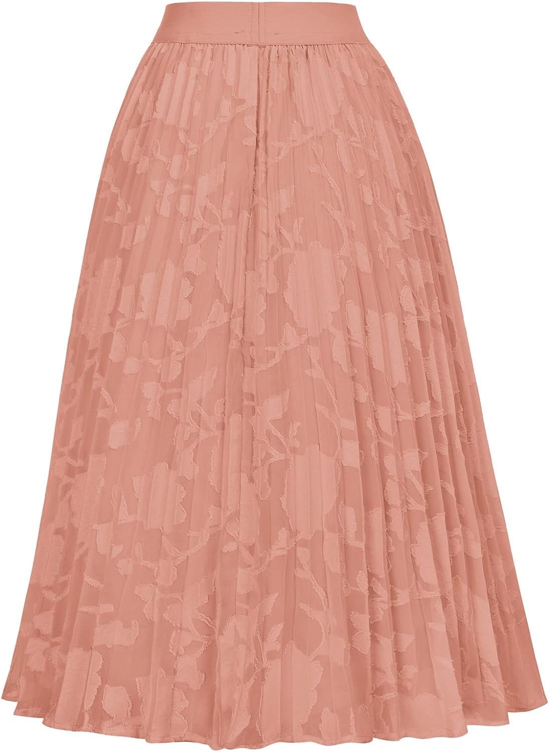 GRACE KARIN Women High Elastic Waist Pleated Chiffon Skirt Midi Swing A-line Skirts(Floral Lace Pink-orange)