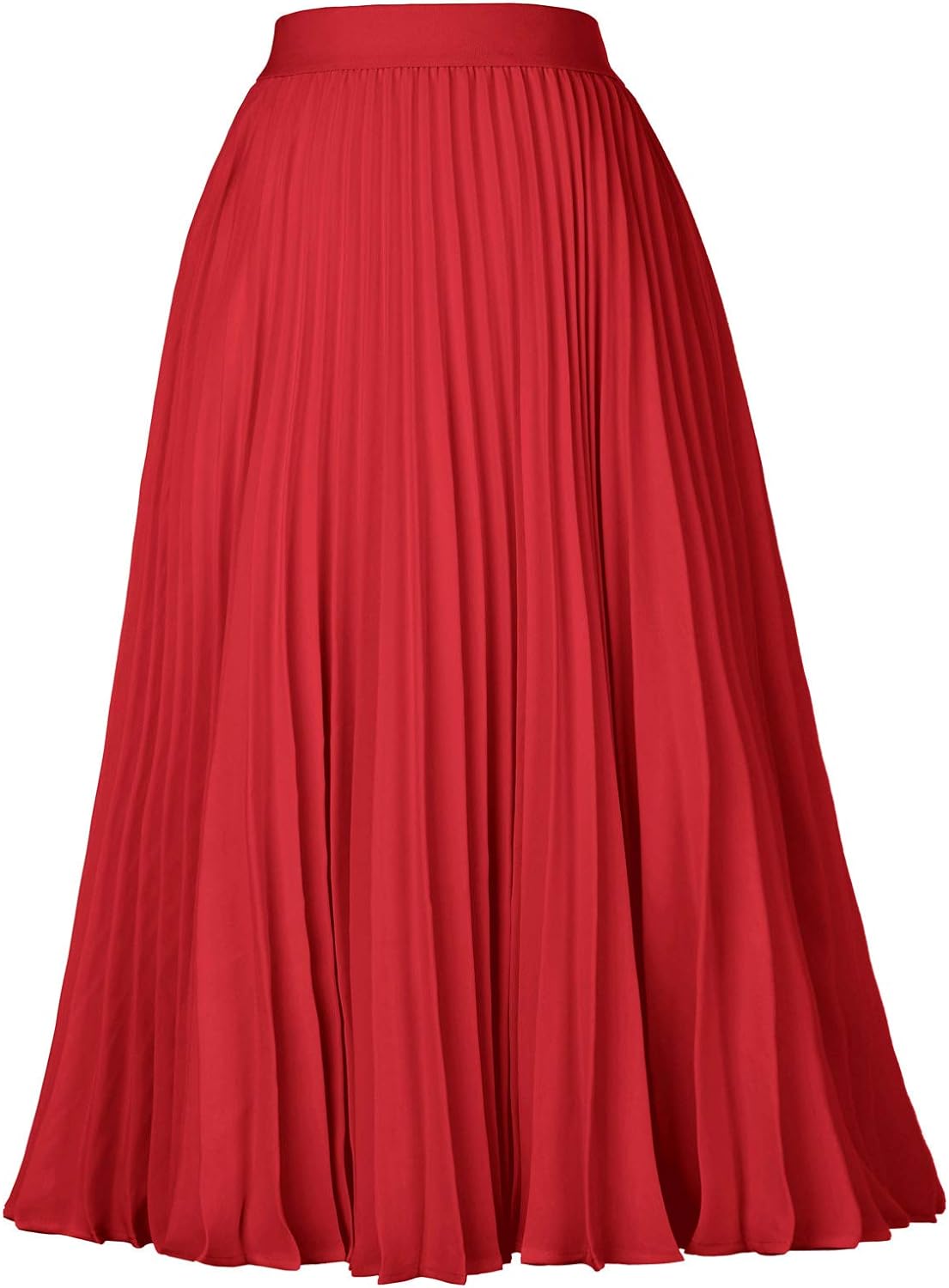 GRACE KARIN Women High Elastic Waist Pleated Chiffon Skirt Midi Swing Aline SkirtsRed