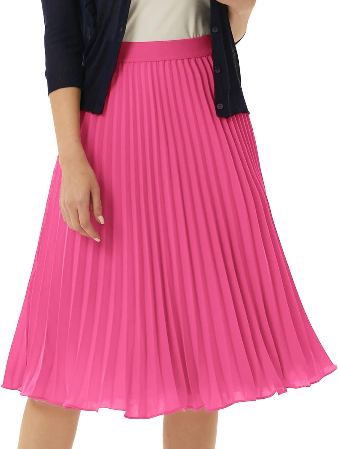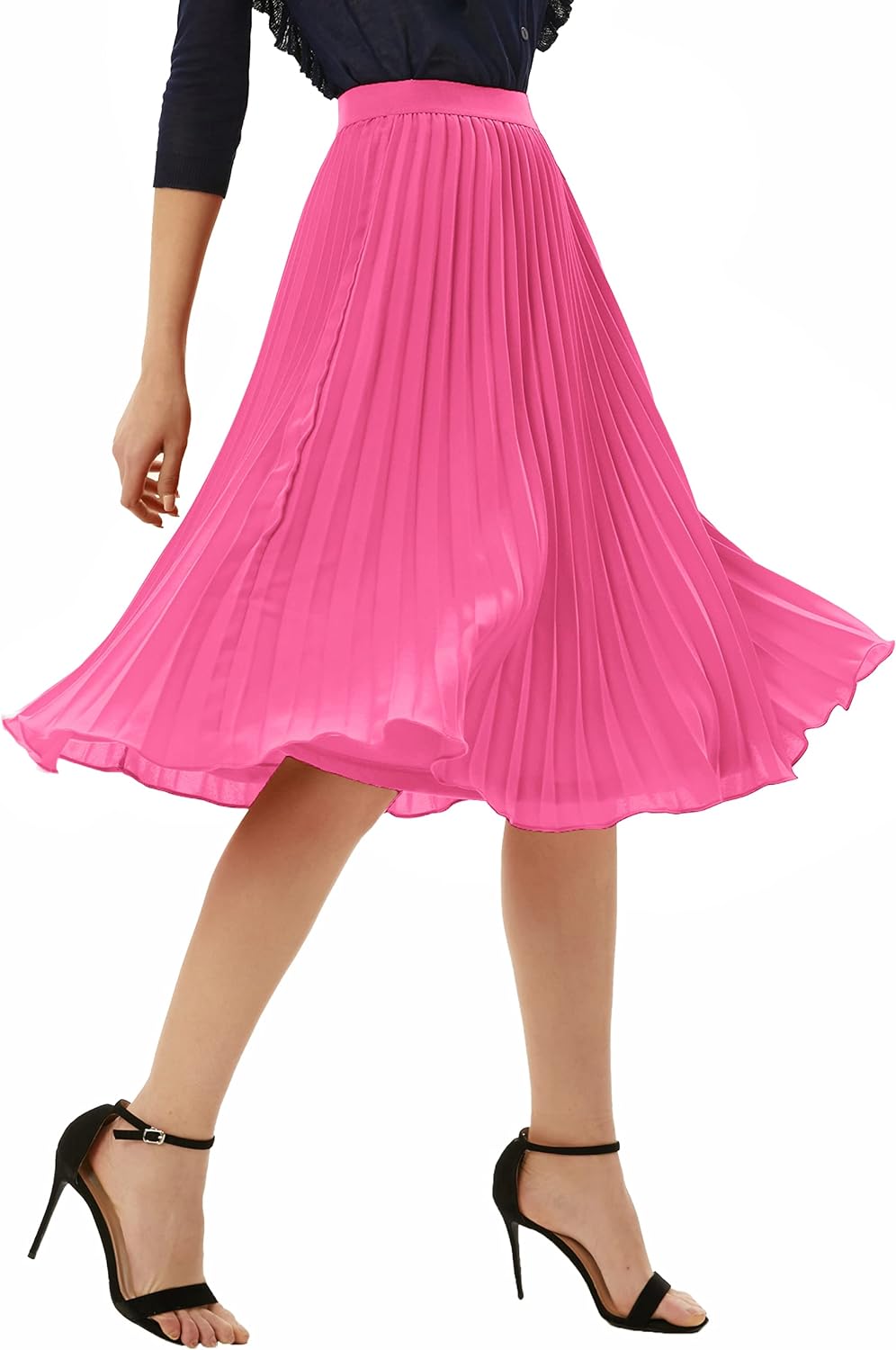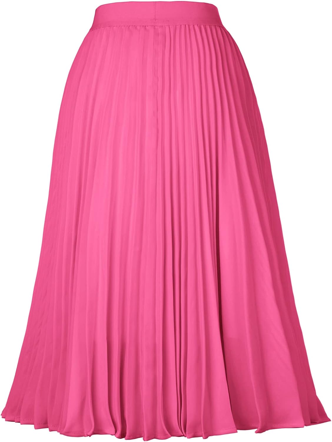 GRACE KARIN Women High Elastic Waist Pleated Chiffon Skirt Midi Swing Aline SkirtsRose Pink