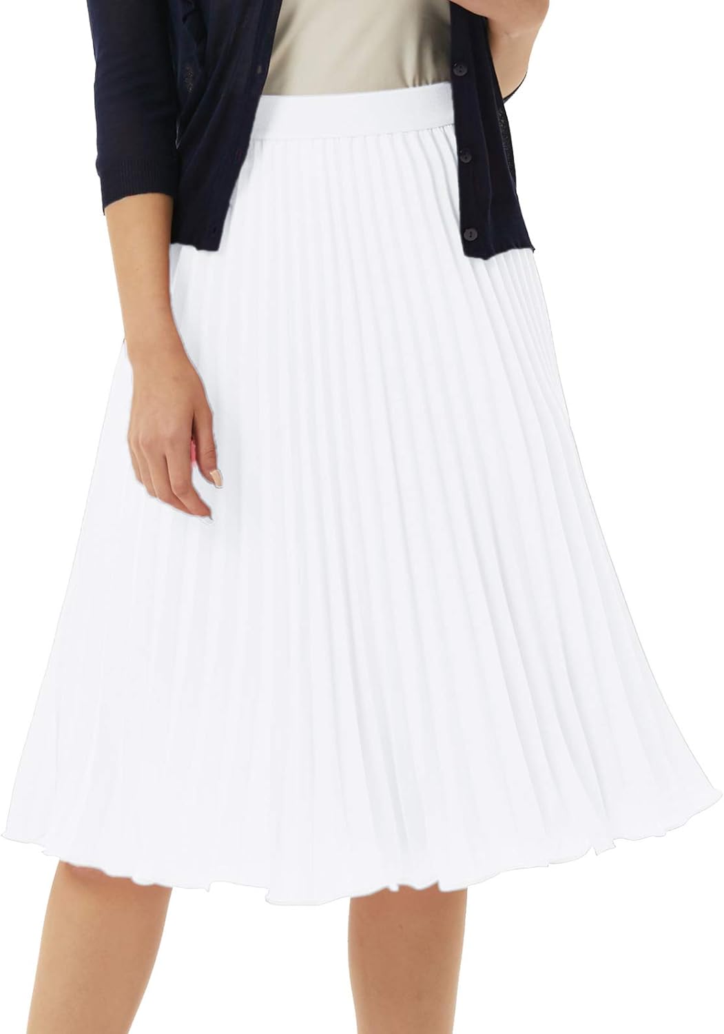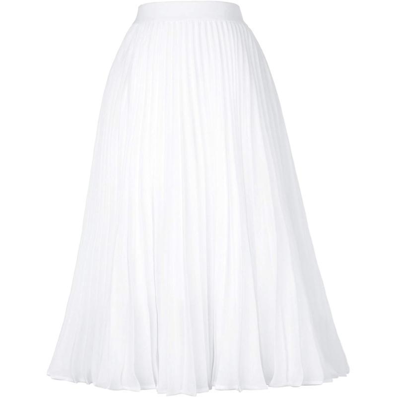 GRACE KARIN Women High Elastic Waist Pleated Chiffon Skirt Midi Swing Aline SkirtsWhite