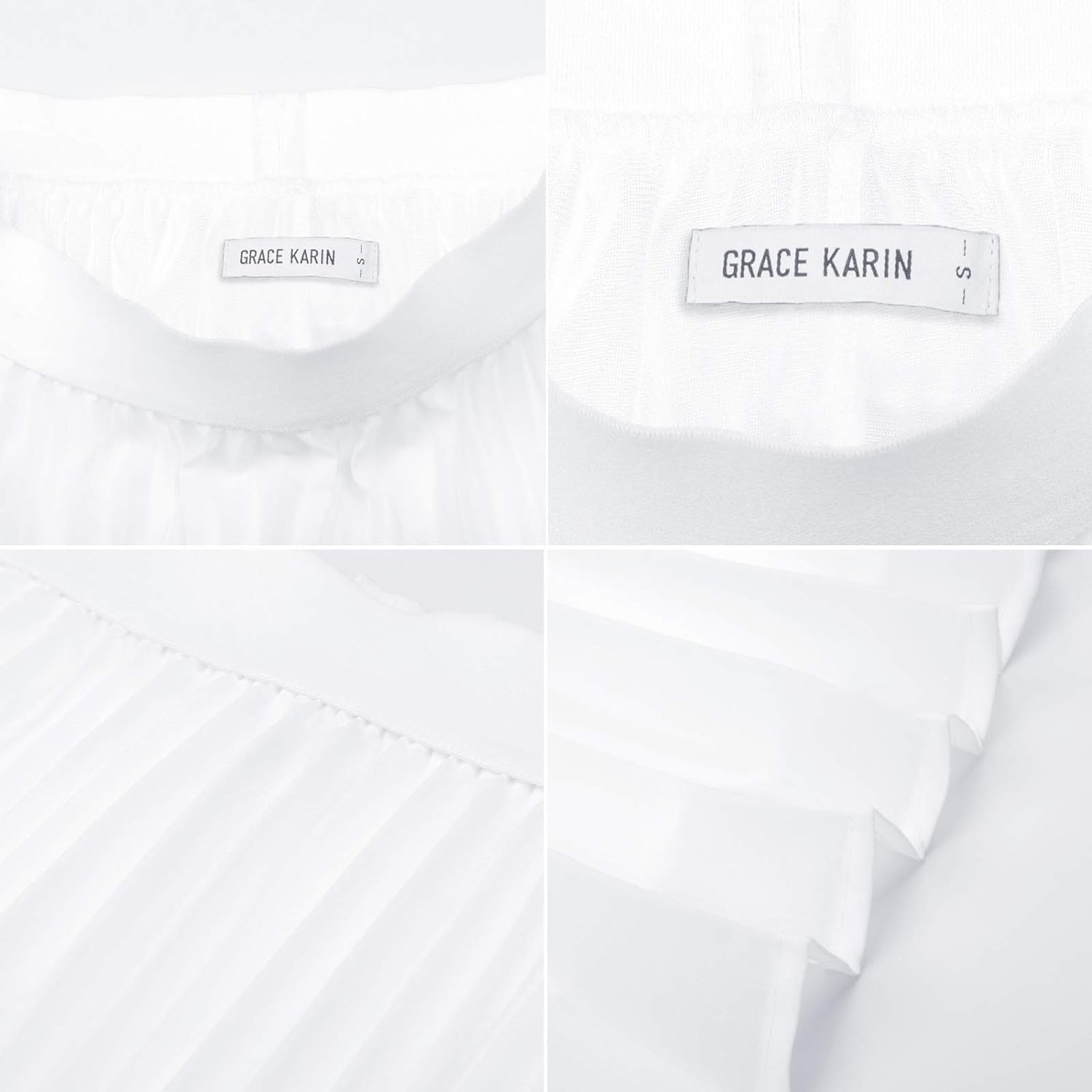 GRACE KARIN Women High Elastic Waist Pleated Chiffon Skirt Midi Swing A-line Skirts(White)